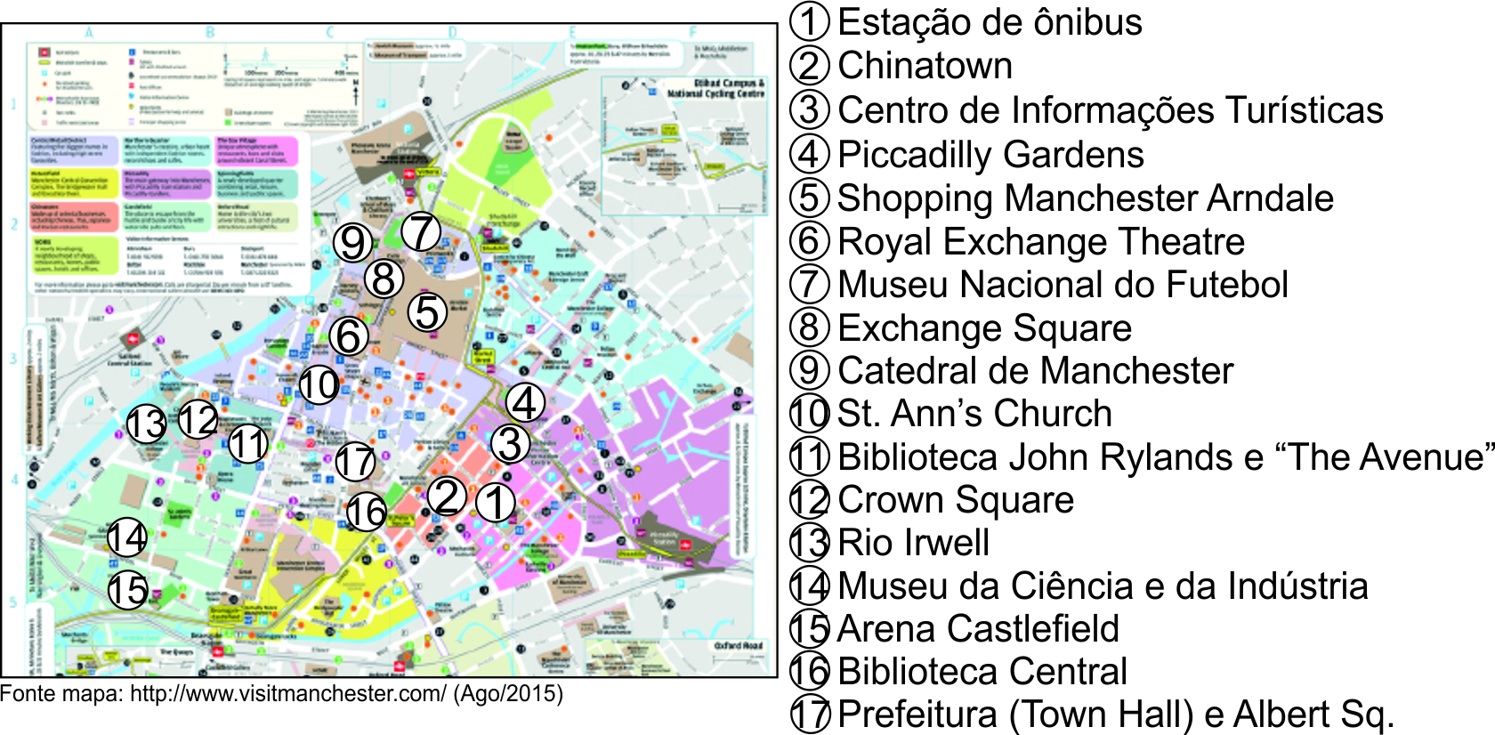 Pensei por diversas vezes em ir passar um dia em Manchester (noroeste da Inglaterra, bem pertinho de Liverpool), mas sempre ouvia do pessoal: “Vai fazer o que lá? É uma Liverpool grande”. Os “scouses” (como são chamados os nativos de Liverpool) diziam que eu não deveria ir de jeito algum lá, afinal existe uma grande rivalidade entre Liverpool e Manchester, é quase um Brasil e Argentina! Mas a curiosidade bateu, então aproveitei um domingo que estava de bobeira, comprei a passagem e peguei o ônibus das 11:00, chegando lá às 11:50 (National Express – £10 ida e volta – tem vários horários, praticamente de hora em hora). A (1) estação é bem central (Chorlton St), bem pertinho do (3) Centro de Informações Turísticas (CIT). Mas antes de ir ao CIT , resolvi ir em (2) Chinatown, porém achei bem pequena e nada interessante. Realmente, neste ponto, Liverpool ganha de disparada, pois sua Chinatown é muito legal.