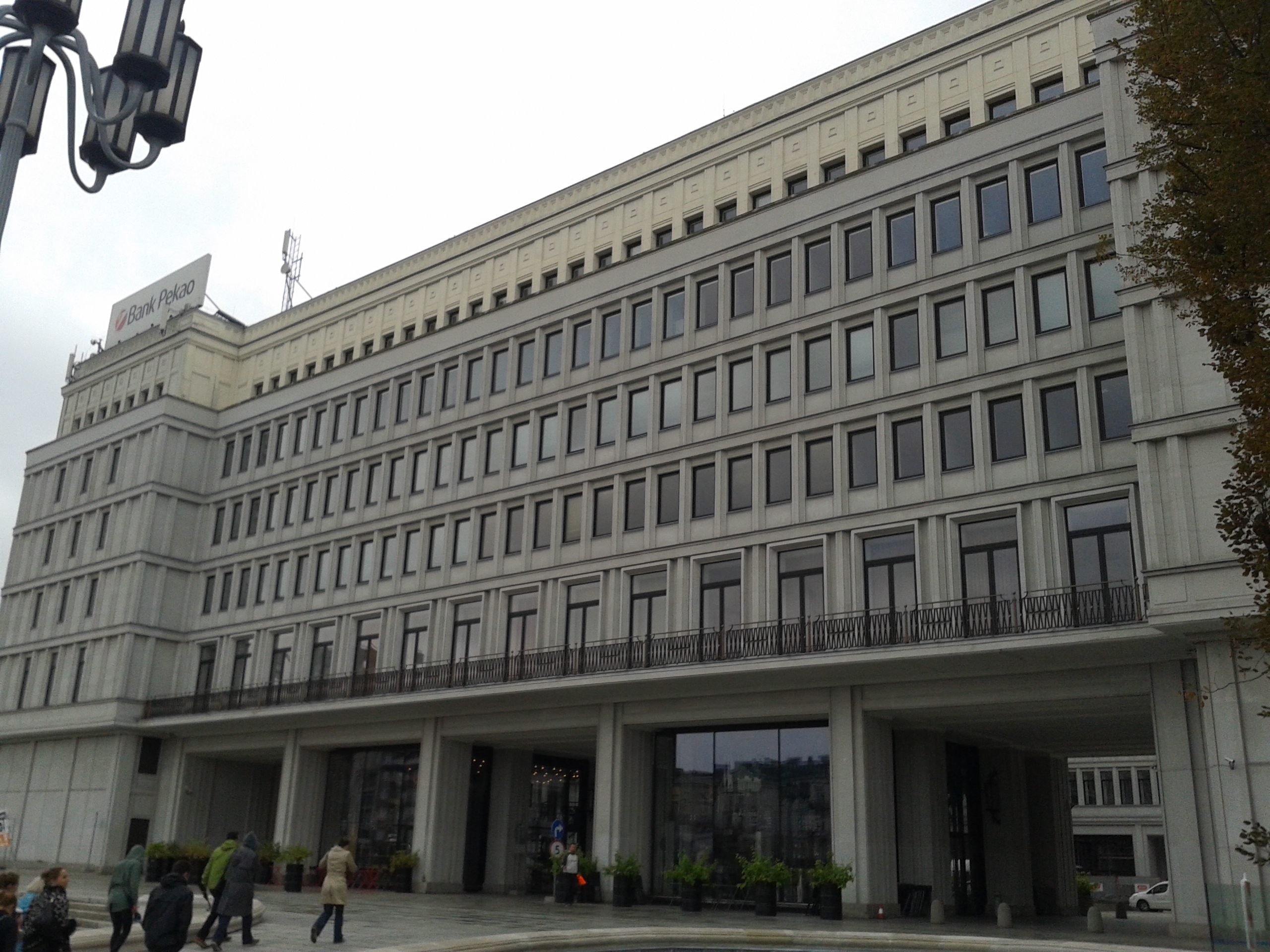 O guia do tour falou do período em que a União Soviética ocupou a Polônia (logo após o fim da Segunda Guerra Mundial). Mostrou a antiga sede do governo comunista(6), o prédio onde ficava a Censura(7), falou de como os turistas passeavam pela cidade durante o período (acompanhados de um guia da Polícia), como era difícil conseguir um passaporte e viajar para fora do pais e um pouco da arquitetura comunista. Fomos até a praça da Constituição(8), de onde saiam as marchas comunistas, destacando a importância do governo destacar os trabalhadores em detrimento de artistas e cientistas, falou do período em que os tanques de guerra ocuparam a praça e do partido Solidariedade, que lutava contra os comunistas.