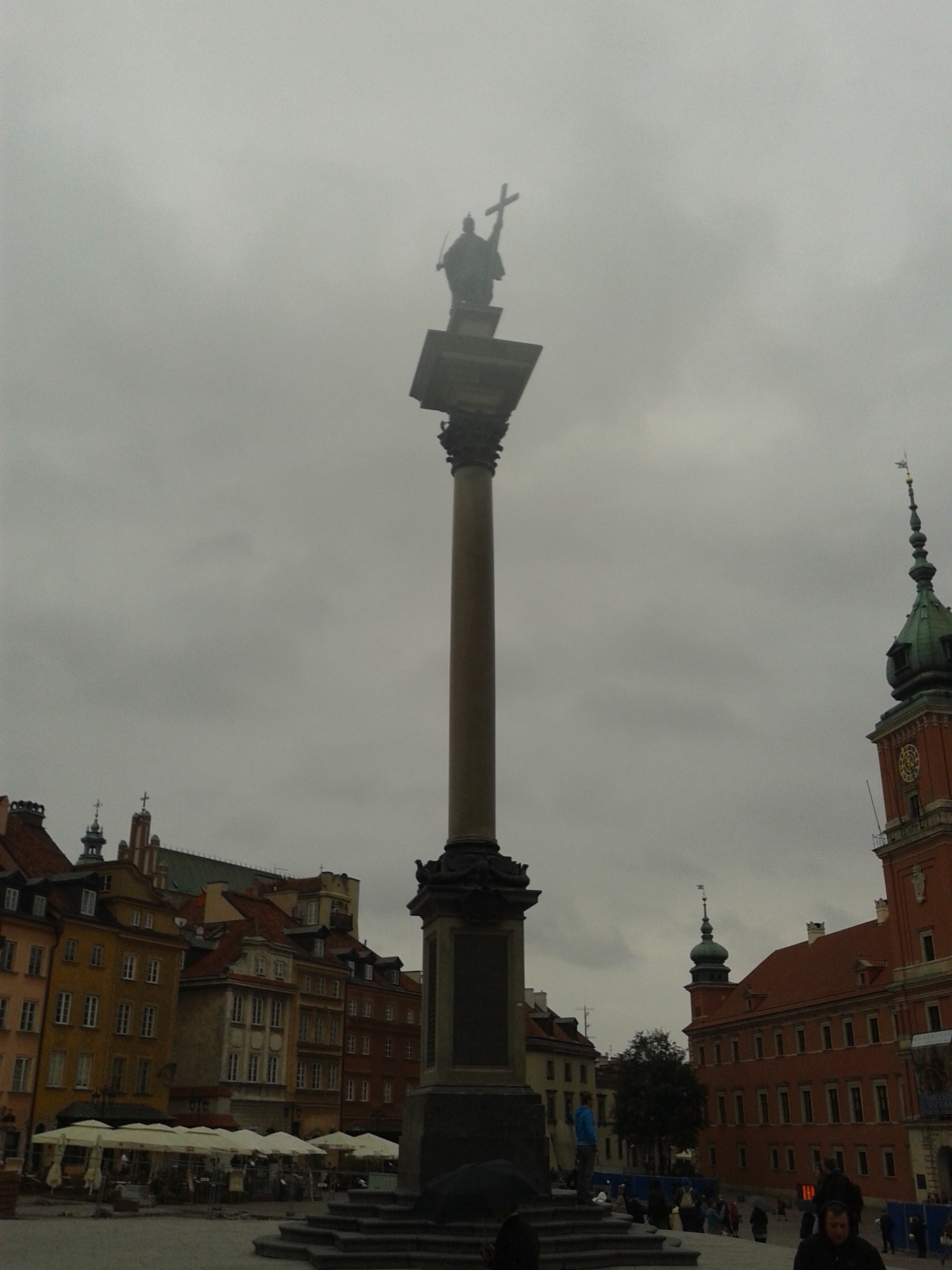 Passei pela Coluna de Sisgmund(12), fui até a praça central do antigo mercado(13), onde tem a escultura da sereia(14), um dos símbolos da cidade, e depois voltei, parando no Palácio real(15) para ver a exposição sobre a Guerra Fria (gratuita) e segui para o Hostel pela Nowy Swiat(16), rua que foi totalmente reconstruída após a segunda guerra, e hoje é repleta de cafés, restaurantes e lojinhas.