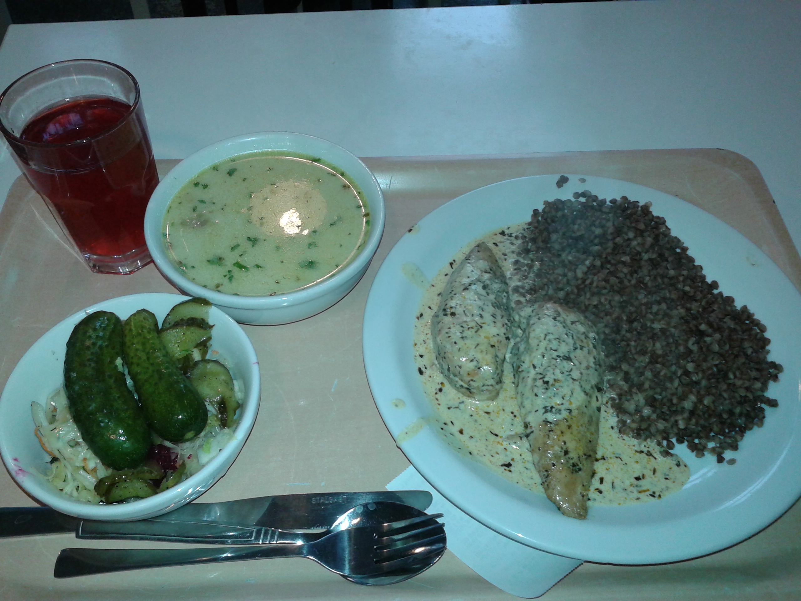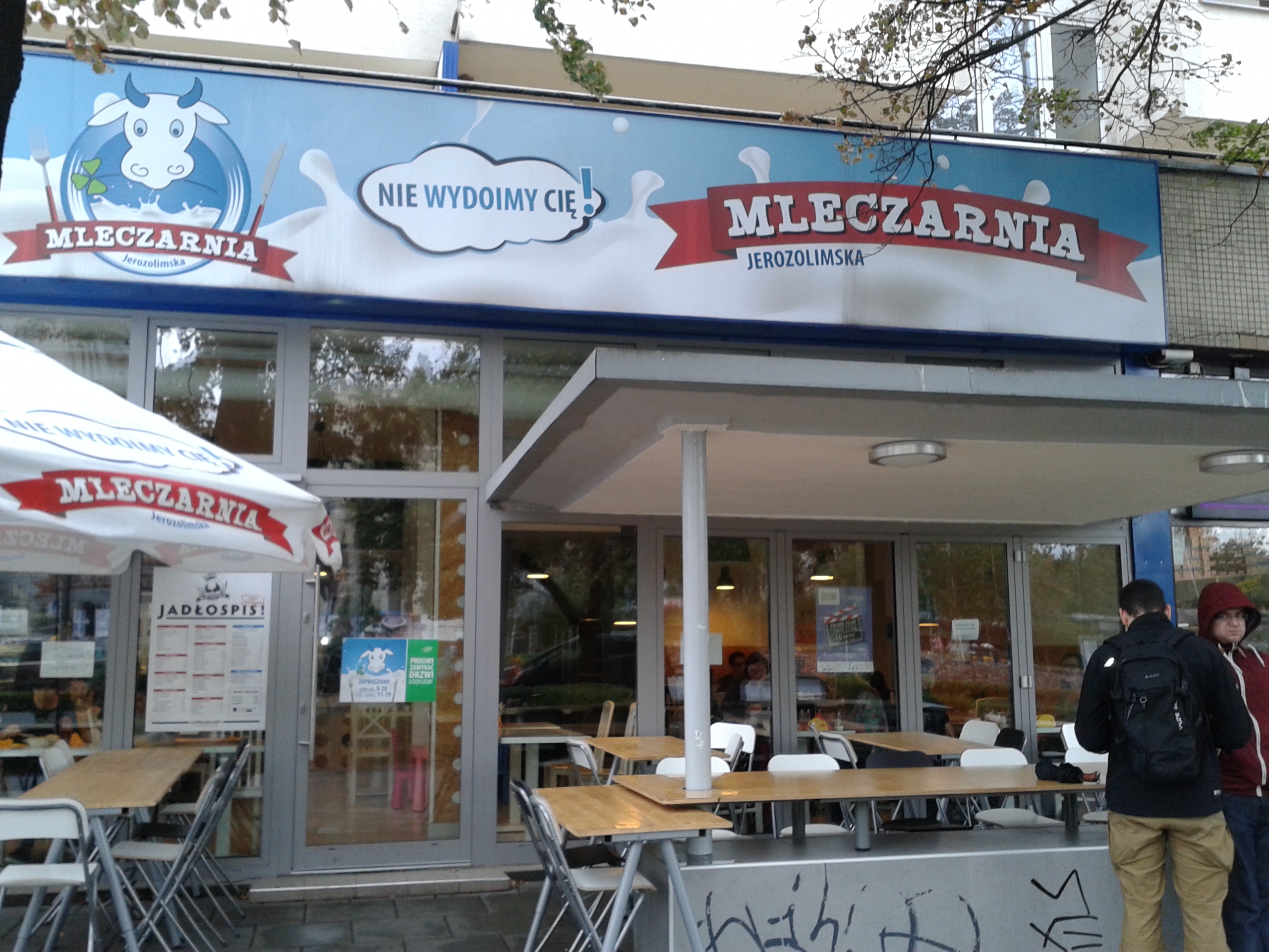 Segui a recomendação do guia e fui comer em um Milk Bar(10), um estilo de cantina muito típica durante o comunismo que hoje é muito frequentada por locais que buscam comida local boa e barata. Não tem cardápio em inglês e não servem bebida alcoólica. Comprei um combo por 19,90 pln (€5) com salada, sopa, um prato bem generoso de peito de frango grelhado com molho de queijo e kaskas (um cereal, tipo um cuscuz diferenciado). Existem vários restaurantes como esse pela cidade, para identificar basta procurar o letreiro com a vaquinha.