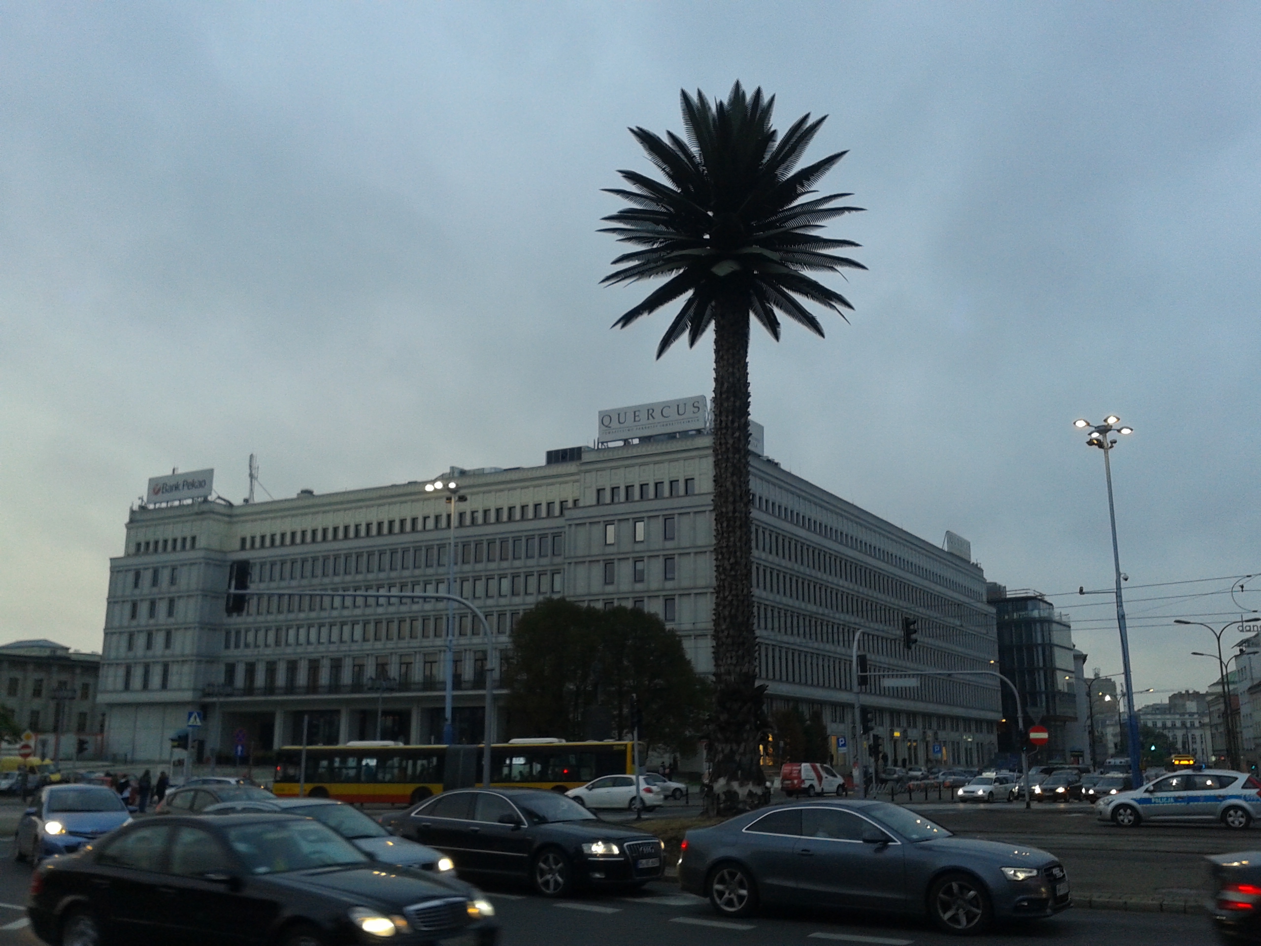 Resolvi fazer o free walking tour que conta a história do comunismo. Caminhei até a Palmeira(5), local de encontro do tour. Ela não é natural, é uma obra de arte moderna, idealizada pela artista Joanna Rajkowska, que foi instalada em 2002 na avenida Al. Jerozolimskie, que significa rua Jerusalém, como forma de homenagear Israel .