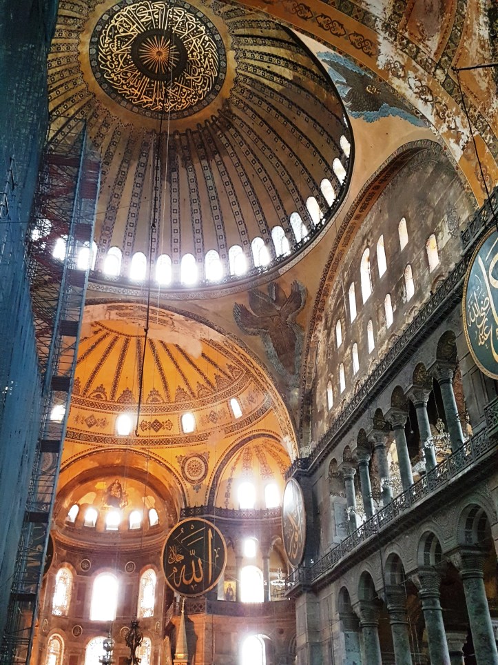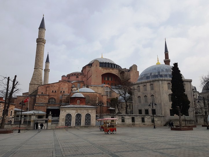 - Basílica de Santa Sofia (Hagia Sophia Museum) – fica bem em frente à Mesquita Azul. Por quase mil anos funcionou como igreja cristã, mas foi convertida em mesquita após a conquista de Istambul pelo Sultão Mehmed. No século XX foi transformada em museu com relíquias do período Otomano, tais como pinturas e mosaicos. A entrada custa 40TL e fica em frente à Mesquita Azul.