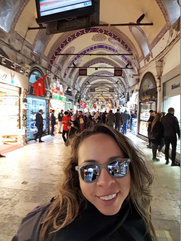 Levei tudo isso em consideração, mas confesso que foi tudo muito tranquilo e em nenhum momento me senti em risco. Procurei me adequar às regras impostas às mulheres, vestindo roupas adequadas, por exemplo. Em relação aos homens, fui muito bem tratada por todos (vendedores, garçons…) e eles foram bastante respeitosos. Os que se aproximaram enquanto eu andava pelas ruas eram vendedores (principalmente de tapetes). Acho que eu tenho cara de brasileira mesmo, porque a maioria já chegava falando português. É isso mesmo! Cuidado na hora de fazer comentários em português perto dos turcos! Junto aos principais pontos turísticos sempre têm vendedores que falam nossa língua. Fiquei impressionada, mas um deles me explicou que aprendeu com os clientes brasucas! Mesmo assim, eu não dava corda para eles! Portanto, Istambul pode sim entrar no roteiro de mulheres aventureiras como eu, basta pesquisar sobre a cultura e tomar os devidos cuidados.