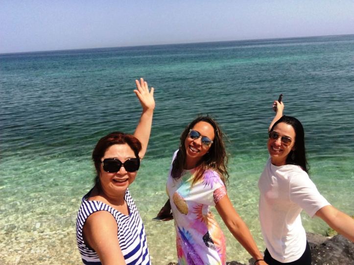 Wadi Shab – é um vale localizado na região de Al Sharqiyah bastante frequentado por turistas e locais, que fica a menos de 30 minutos do Sink Hole, continuando no sentido sul. O carro fica no estacionamento, de onde partem os barquinhos que fazem a travessia (RO 1) que dura cerca de 2 minutos. Mas têm aquelas pessoas mais “roots” que atravessam a pé ( a água bate um pouco acima da cintura). Não teria coragem, pois a água nesse canal é de um verde escuro esquisito.
