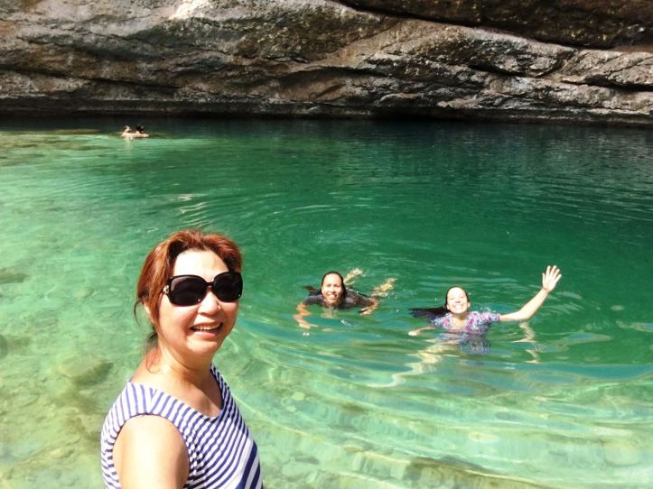 Basta descer a escadaria para chegar ao lago de águas mornas e transparentes. Mas, por ser um espaço público, deve-se respeitar as regras e usar roupas compostas. Coloquei uma calça legging e uma camiseta para entrar na água.