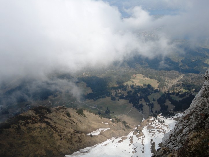 Subi uma escadaria até o Oberhaupt e outra até a Chriesiloch, depois entrei pelas cavernas do caminho do Dragão, já que a lenda diz que vários dragões viviam no Monte Pilatus. Lá em cima há ainda um mirante com uma vista linda, restaurantes e outro hotel.