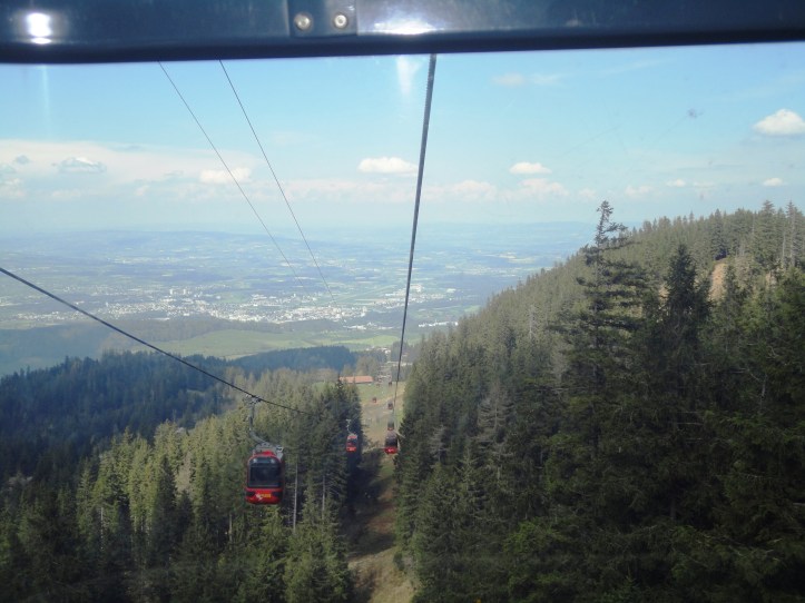 A descida seguinte foi em um teleférico menor (bondinho pequeno com assento para 4 pessoas) por 15 minutos até Krienseregg, onde tem um restaurante e diversos brinquedos para criança.