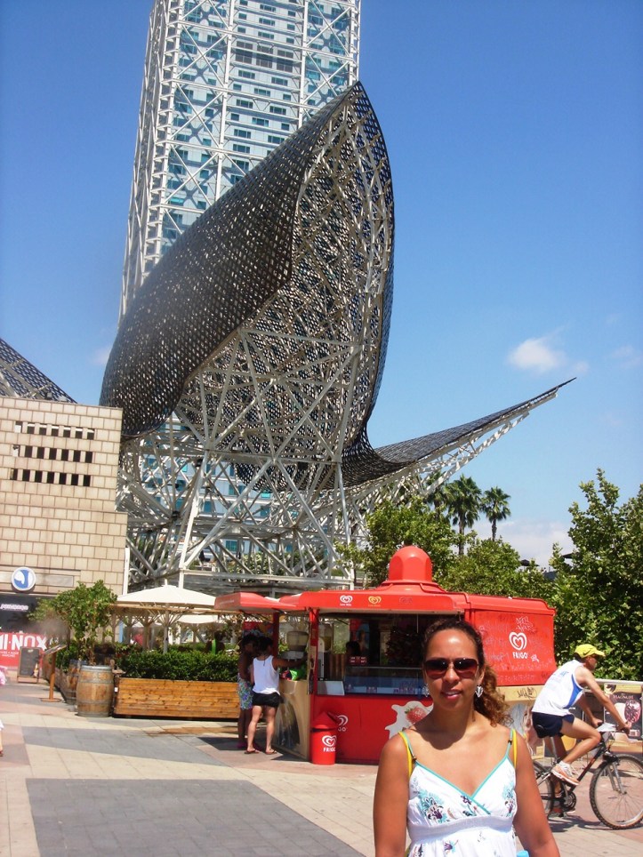 - Porto Velho – é a área do antigo Frente Marítimo e foi revitalizada para os Jogos Olímpicos de 1992, transformando-se em uma maravilhosa área para comércio, atrações culturais e diversão. Caminhando por seu calçadão (Rambla del Mar), nos deparamos com uma marina, barraquinhas de lanches e algumas esculturas, uma delas bem diferente: um caramanchão em forma de lagosta.