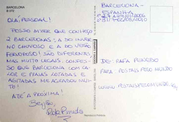 Tive o prazer de visitar Barcelona em duas ocasiões bem distintas: no inverno de 2006 e no verão de 2010. A primeira visita ocorreu em meio a um mochilão de 30 dias pela Europa, junto com Mari e Manú, duas queridas amigas que viveram comigo em Londres. Era nossa viagem de despedida da estadia londrina. Apesar de termos sido pegas por muito frio e chuvas, conseguimos conhecer as atrações principais da cidade. Mas fiquei com gostinho de quero mais e curiosa para conhecer o fervoroso verão de Barcelona, por isso resolvi voltar em agosto de 2010 com minha mãe.
