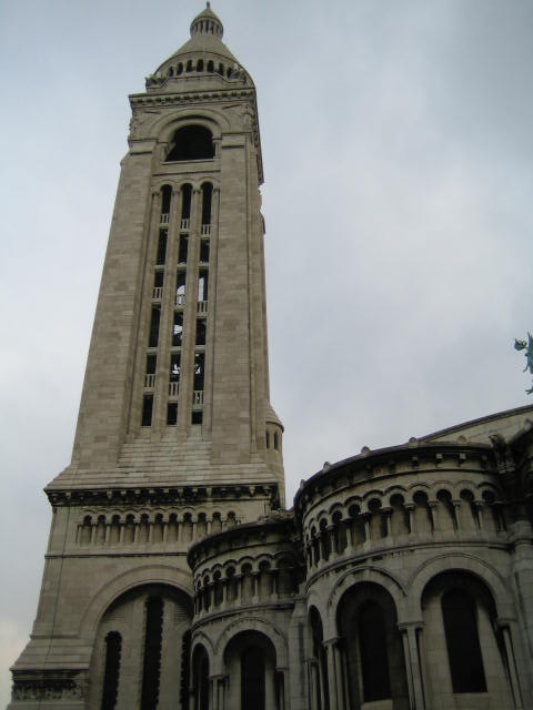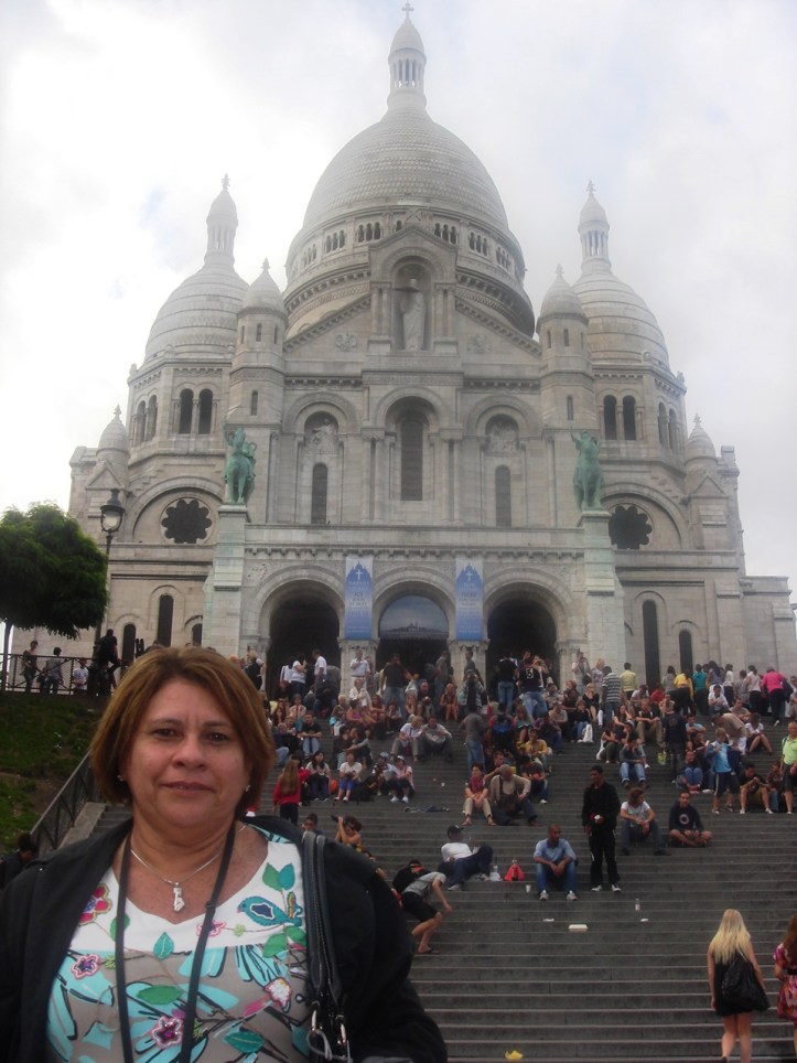 - Basílica Sacré Coeur – é uma imponente igreja que fica no alto da colina Montmartre, no bairro de mesmo nome. A subida pode ser feita em funicular (em 2010 custou €1.70) ou de escada. Eu encarei os degraus (são 130m de subida!) e minha mãe foi de funicular! A basílica é dedicada ao Sagrado Coração de Jesus. É um dos mais importantes símbolos católicos da França. Suas cúpulas são belíssimas, sendo possível subir em uma delas para admirar a vista panorâmica da cidade, e também tem uma torre de mais de 80 metros de altura.