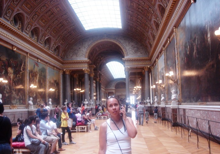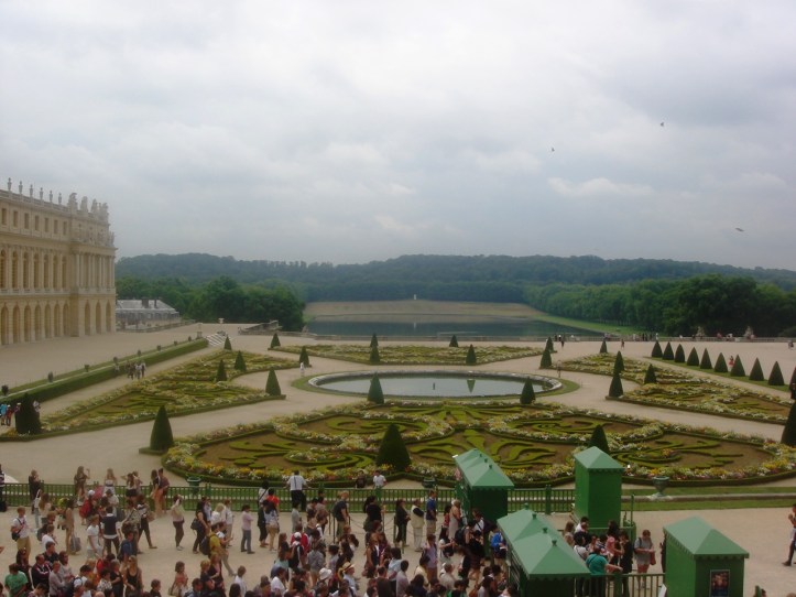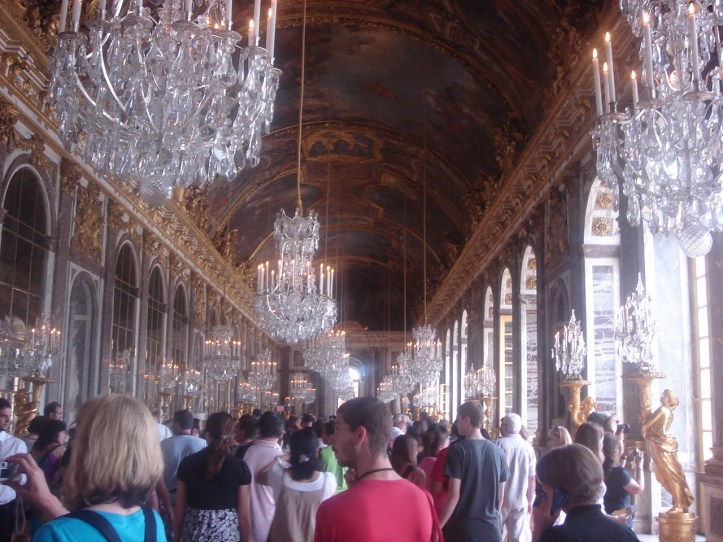 - Palácio de Versailles – castelo da realeza francesa, datado do século XVII, que fica em Versailles, subúrbio de Paris. Foi convertido em museu no século XIX. Ele é famoso por seu exuberante jardim, mas tem como atrativos ainda o Salão dos Espelhos, os aposentos reais, o Grand Trianon (um pequeno palácio em mármore rosa) e as belíssimas fontes espalhadas pelo jardim (tem o show das fontes com música). O tour pelo Palácio, com o áudio, custou €15 euros. Para acrescentar o passeio pelo jardim, tinha que pagar mais €7 euros e o tour completo custava €25. O jardim abre todos os dias, já o Palácio fecha às segundas. Vão preparados para encontrar muita gente!