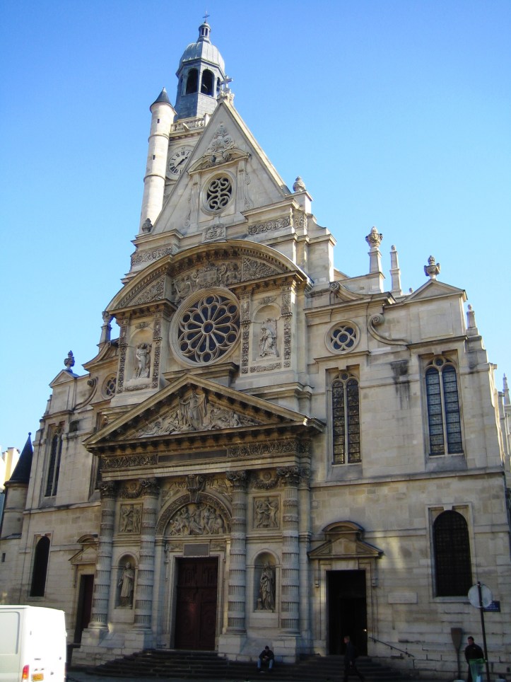 - Igreja Saint Étienne du Mont – uma igrejinha muito linda que fica no Quartier Latin, uma região conhecida pelas universidades, como a de Sorbonne, por exemplo, e as escolas. Nela estão guardados os restos mortais da padroeira da cidade: a Santa Genoveva.