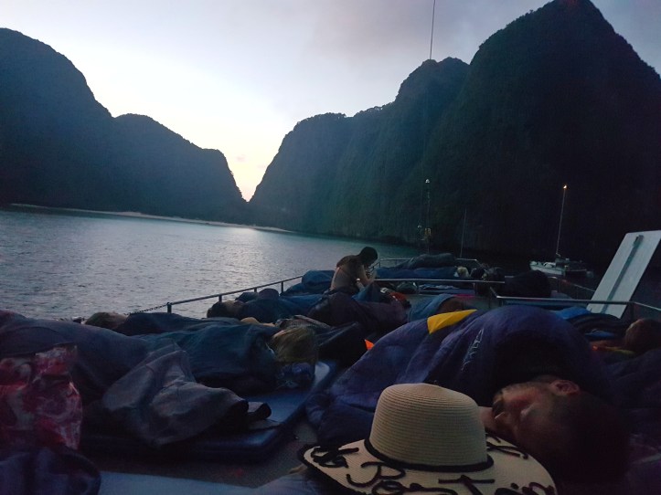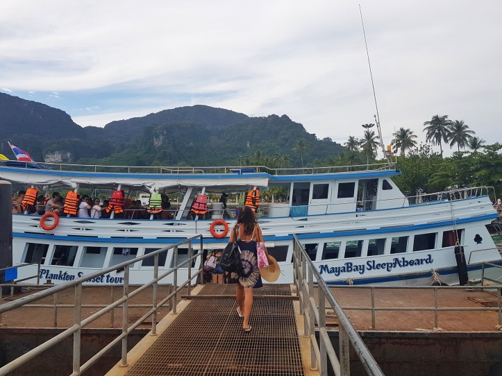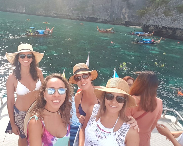 Continuando os relatos sobre as Ilhas Phi Phi, no Sul da Tailândia, chegou a vez de falar como foi uma das experiências mais incríveis que tivemos nessa viagem: o Maya Bay Sleep Aboard! Para quem nunca ouviu falar, é um passeio super disputado em um barco que sai da ilha Phi Phi Don (cais Tonsai), onde estávamos hospedadas, para Maya Bay em uma tarde, retornando ao final da manhã do dia seguinte. Você deve estar se perguntando onde as pessoas dormem. A resposta é: no próprio barco que estará atracado em meio à linda baía (Maya Bay).