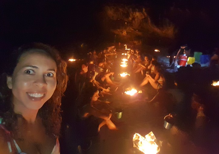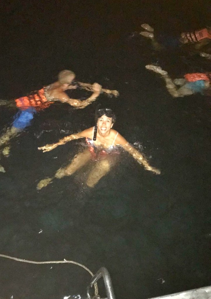 - Nadar com os plânctons – após o jantar, vestimos os coletes de uma forma inusitada: pelas pernas! Assim, conseguíamos flutuar e colocar a cabeça na água ao mesmo tempo. Era a hora de voltar para a água e observar os plânctons, micro-organismos que ficam suspensos nos mares e invisíveis a olho nu normalmente. Porém, com o movimento, eles ficam florescentes se estiver em um ambiente totalmente escuro. Infelizmente, não tenho como mostrar para vocês, pois não sai na foto, mas é muito interessante! Mexíamos os braços e as pernas e conseguíamos vê-los brilhar!