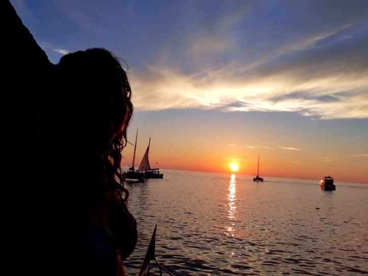 Quando chegamos, a praia ainda estava cheia de turistas e de embarcações atracadas, mas foi esvaziando aos poucos. Ficamos até o final da tarde, cerca de uma hora, e depois retornamos ao nosso barco para admirar um dos mais lindos espetáculos da natureza: o pôr do sol!