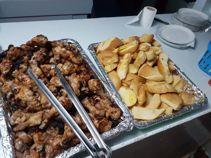 - Churrasco de frango – de volta ao barco, churrasco de frango e umas torradinhas nos esperavam para acompanhar a festinha que tinha hora para terminar: 23:00, momento de as pessoas irem para os seus sacos de dormir!