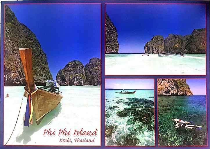 - Viking Cave (Tham Phaya Nak) – é uma caverna no meio das rochas que contornam a baía conhecida como Maya Bay, ficando distante cerca de trinta minutos do cais de partida do passeio. Elas receberam esse nome devido a pinturas encontradas em suas paredes, semelhantes a embarcações vikings. A caverna é explorada para a coleta de ninhos de um pássaro conhecido aqui no Brasil como Andorinhão (em inglês, é swiftlet), iguaria muito apreciada, principalmente, na culinária chinesa. Acredita-se que esses ninhos façam muito bem à saúde e, como todos os produtos saudáveis hoje, são bem caros, alguns mil dólares o quilo. Mas a caverna estava fechada para visitação, segundo a guia, desde o tsunami de 2004, por isso paramos rapidamente só para fotografar.