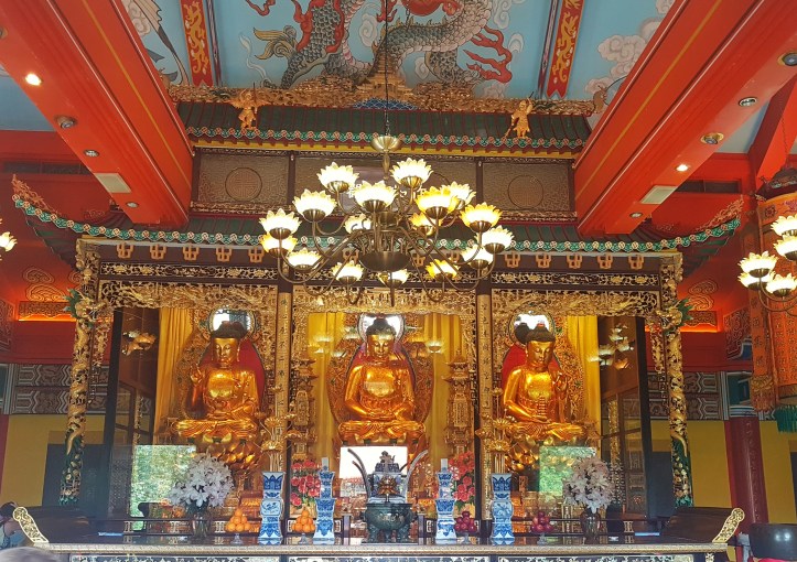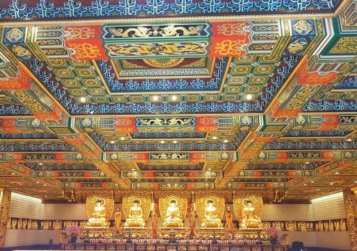 O complexo do Monastério de Po Lin é composto por várias edificações, sendo as principais: o Hall do Skanda Bodhisattva (a entrada principal), com imagens de Budas cheio de oferendas; o Hall do Santuário Principal do Monastério (concluído em 1970); e o Hall dos 10 mil Budas (concluído em 2014). Fiquei encantada pelas cores vibrantes que decoram o monastério e pelas variadas imagens de Buda. Fiquei me lembrando da viagem que fiz à Tailândia no final de 2017, meu primeiro contato com o Budismo.