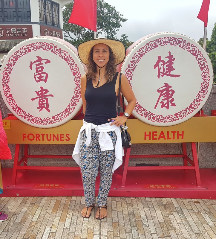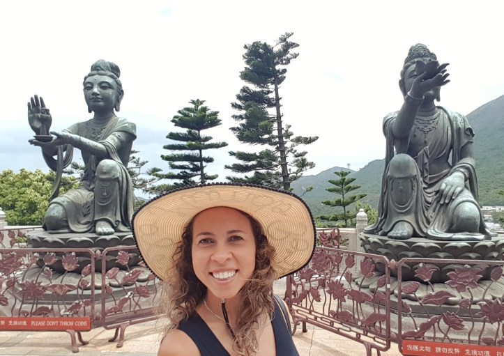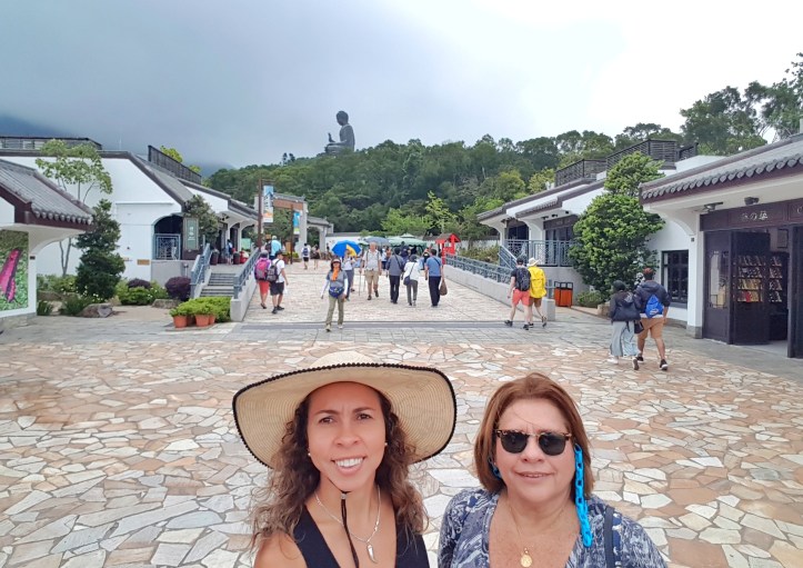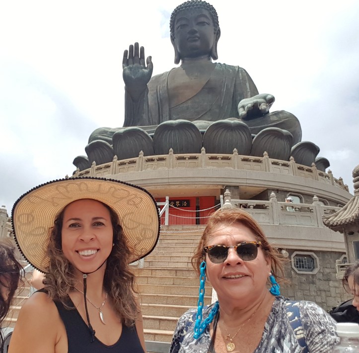 Comecei visitando o Buda Gigante (Tian Tan Buddha), uma das principais atrações turísticas desse território independente da China. Pegamos o metrô até a estação Tung Chung, bem pertinho do ponto de partida do Teleférico Ngong Ping 360º, que tem uma vista incrível e, após 25 minutos, nos deixa bem pertinho da escadaria para o Buda.