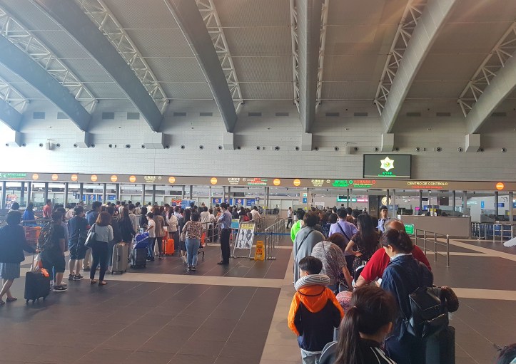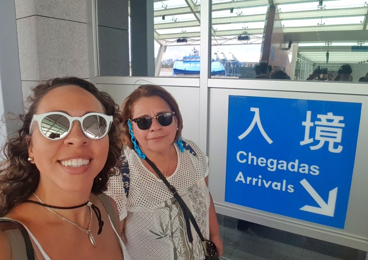 A balsa é bem grande e com poltronas bastante confortáveis. A viagem leva cerca de uma hora. Ficamos impressionadas com o Terminal de Balsas de Macau em Taipa, pois é gigantesco, com vãos imensos!