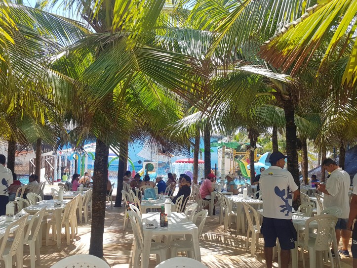 - Chico do Caranguejo – uma das diversas barracas da Praia do Futuro. Fiquei muito impressionada com a estrutura gigantesca e organizada e com o atendimento de primeira. O preço achei bem parecido e até um pouco mais barato que o de muitas barracas de praia em Maceió. Eles têm uma área lounge, que, para ficar nela, o cliente compra uma pulseira por R$30 por pessoa e tem direito ainda à piscina exclusiva e ao parque aquático das crianças. Nessa área tem ainda a opção de ficar num lounge privado para 10 pessoas, com direito à piscina e ao parque aquático, pagando R$500, que vira consumo. Têm ainda as mesas na areia da praia e outras em uma ampla área sob a sombra dos coqueiros.