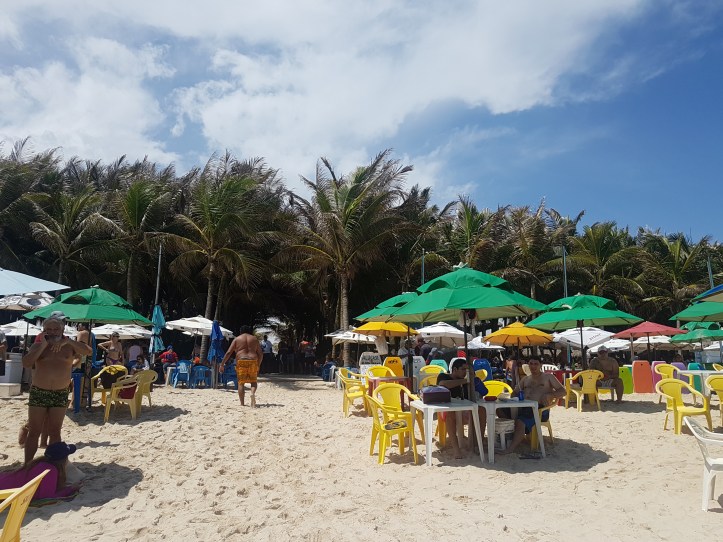- Praia do Futuro – lembrava muito da fama dessa praia, mas fiquei muito decepcionada quando passamos por lá de carro, pois vimos muitos casarões fechados, ruas escuras, passando uma sensação de abandono. Mesmo assim, resolvemos passar uma manhã de domingo em uma das gigantescas barracas da orla. Escolhemos o Chico do Caranguejo, que me deixou impressionada com a estrutura e o atendimento. Falarei mais sobre ele na parte dos restaurantes. O mar é bem forte, o que não me atrai muito, mas é bem legal curtir a barraca.