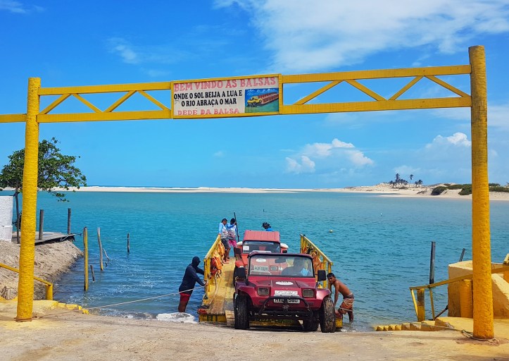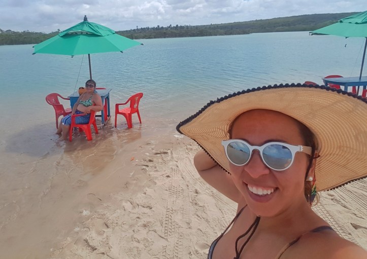Seguimos para a praia de Águas Belas, onde ficamos no restaurante Delícia das Jangadas, cujos funcionários fazem uma recepção bem calorosa com uma música tradicional da região. Lá contratamos o passeio de bugre e com ele fizemos um passeio bem legal que começou atravessando o rio Malcozinhado de balsa.