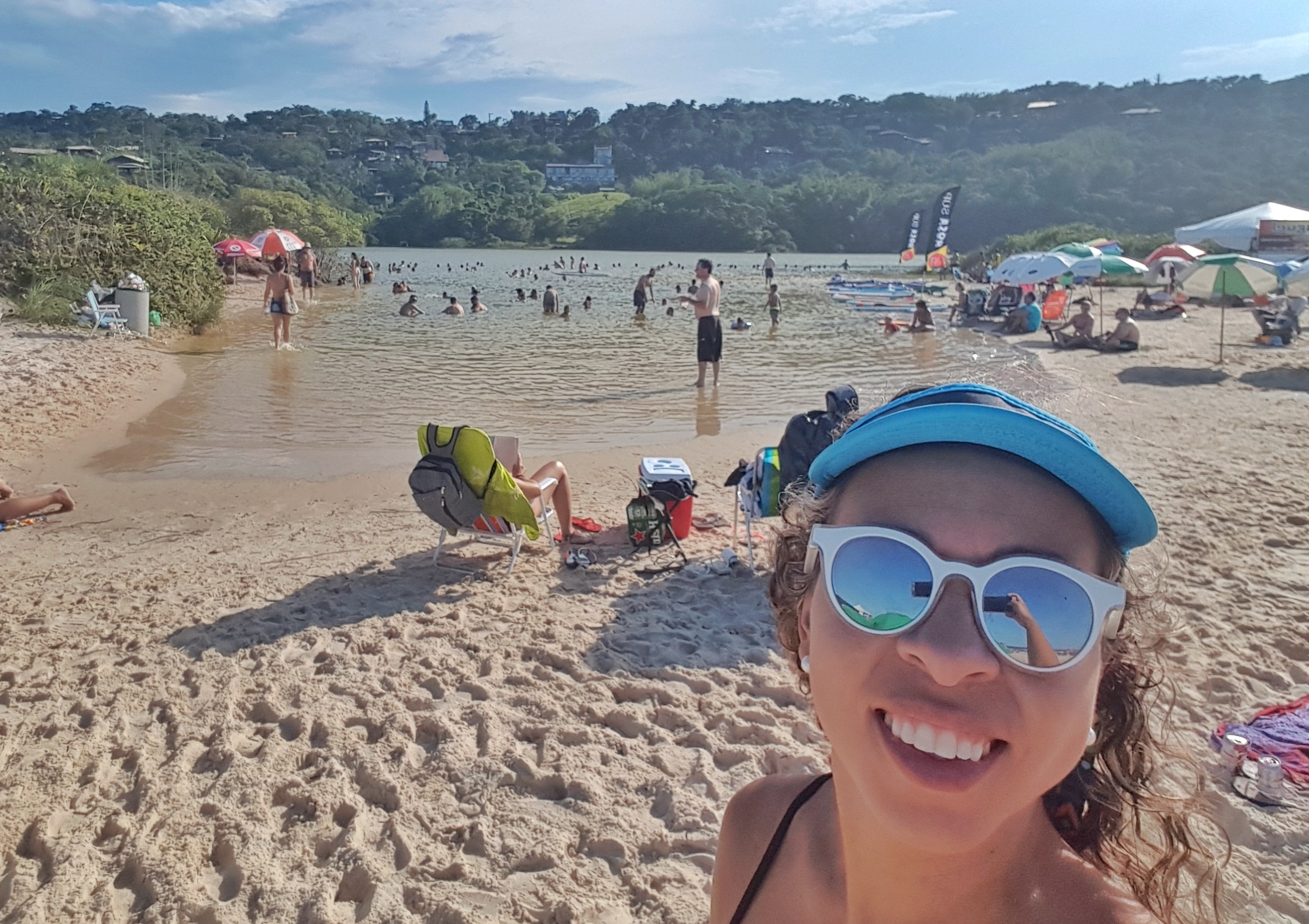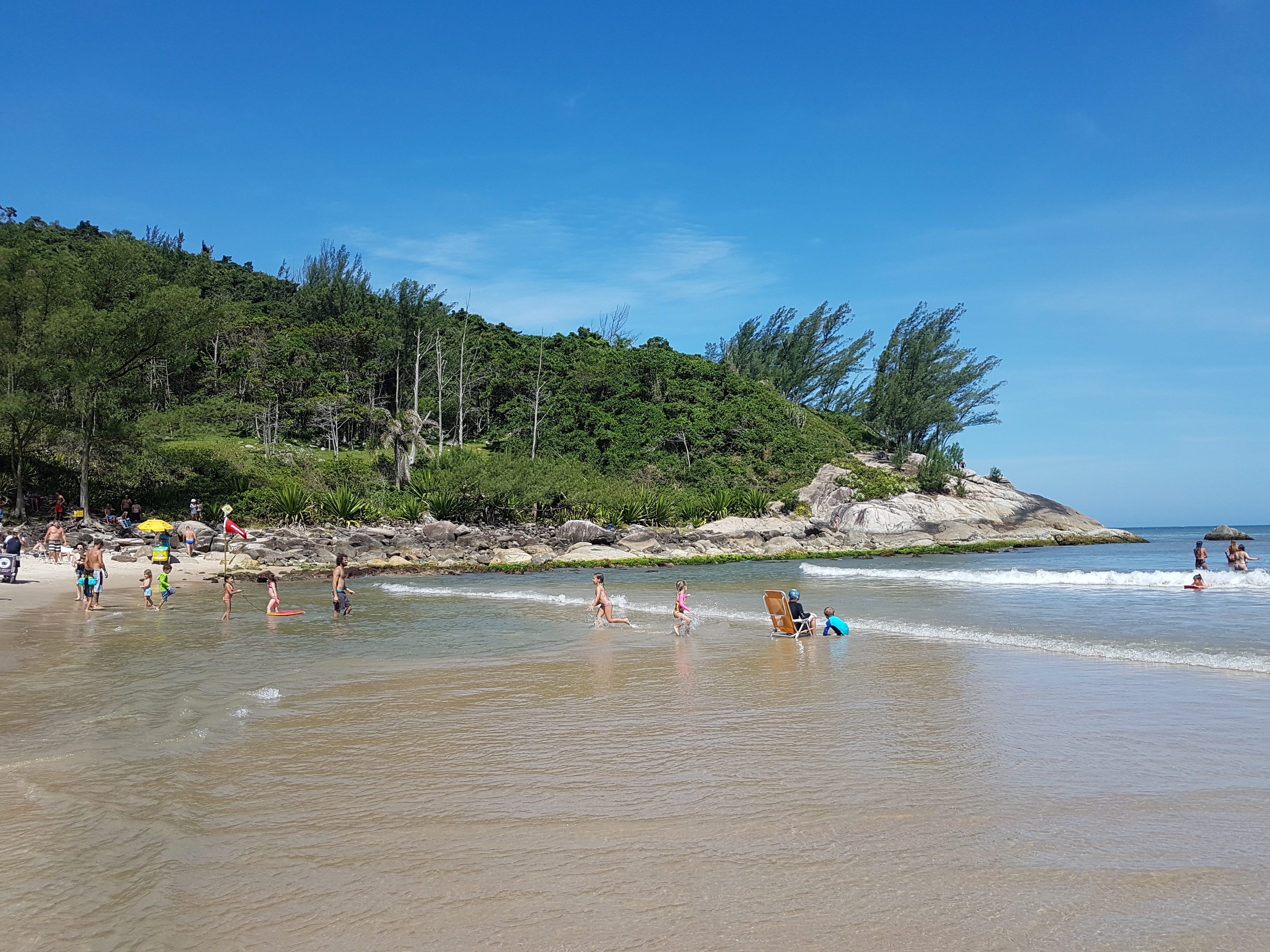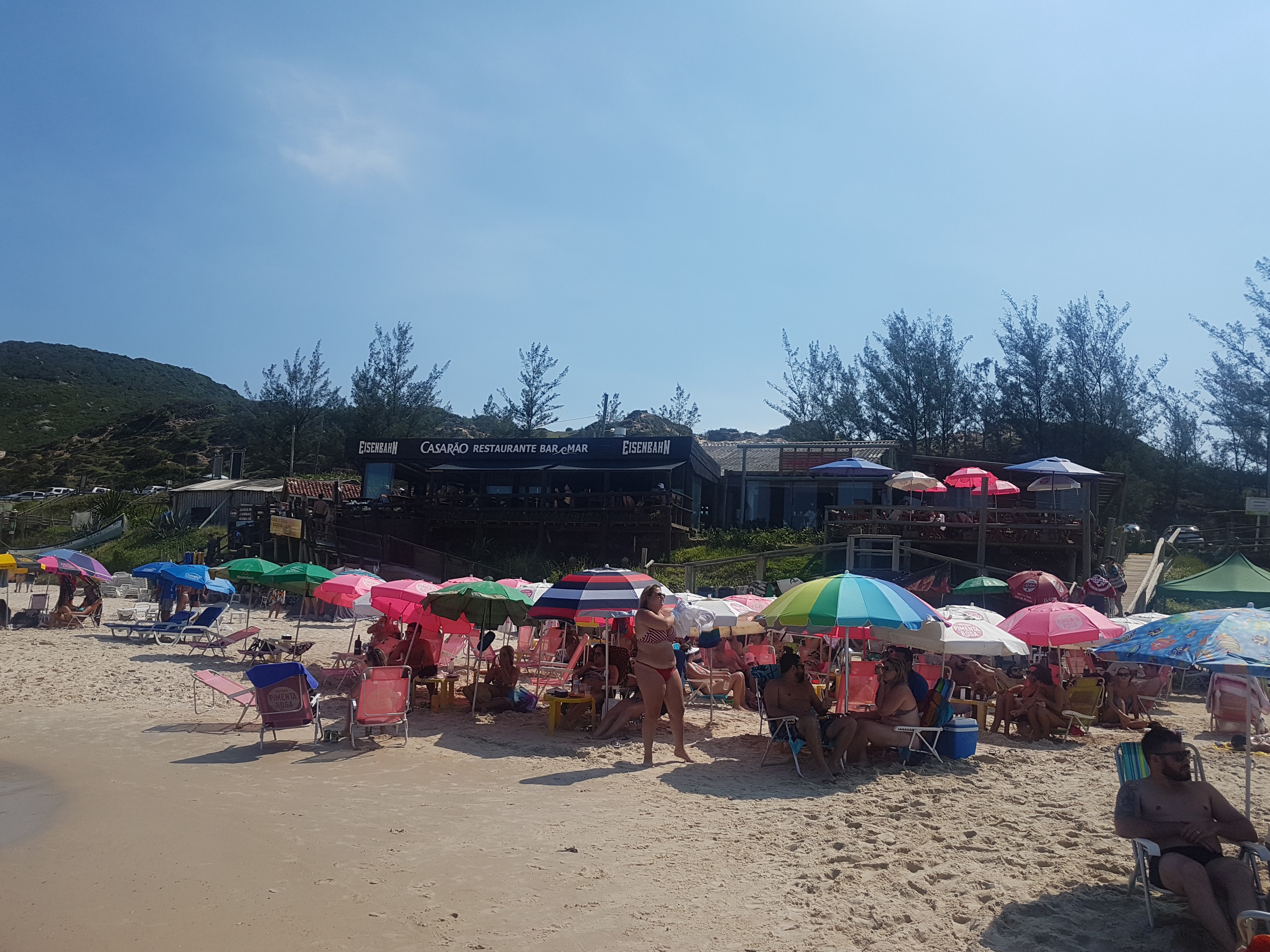 Acredito que por causa dos atrativos da lagoa a praia em frente a ela não fique tão cheia de gente quanto a faixa de praia da Rosa Norte que fica mais adiante. Por isso, escolhemos esse pedaço como nosso point e foi lá que montamos nosso “acampamento” todos os dias. E que “acampamento” caro! O aluguel da cadeira custava R$15 e o do guarda-sol R$20!