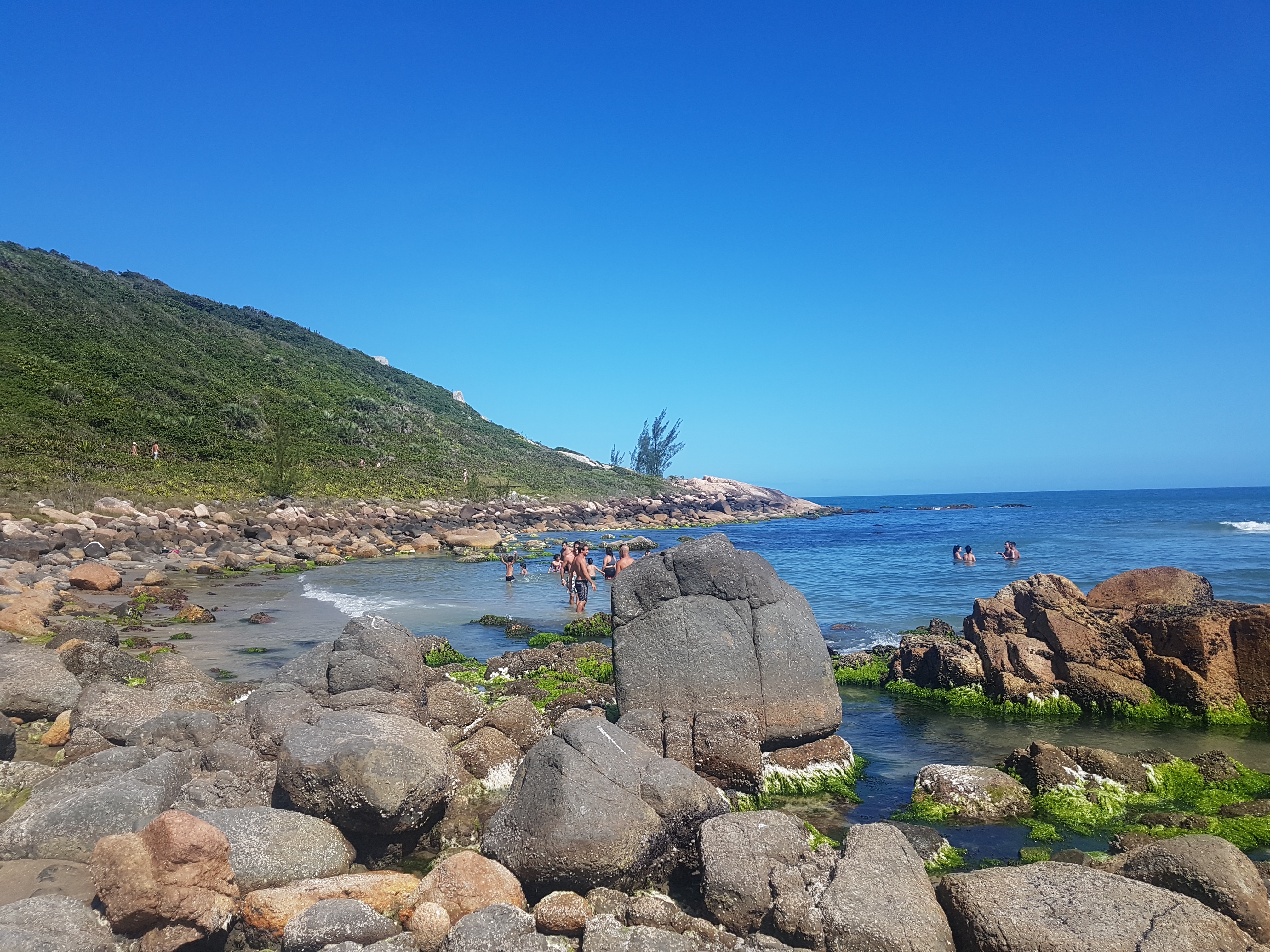 Ao final da Rosa Norte, junto do morro que a separa da Praia Vermelha, têm as piscinas naturais, rodeadas por pedras.