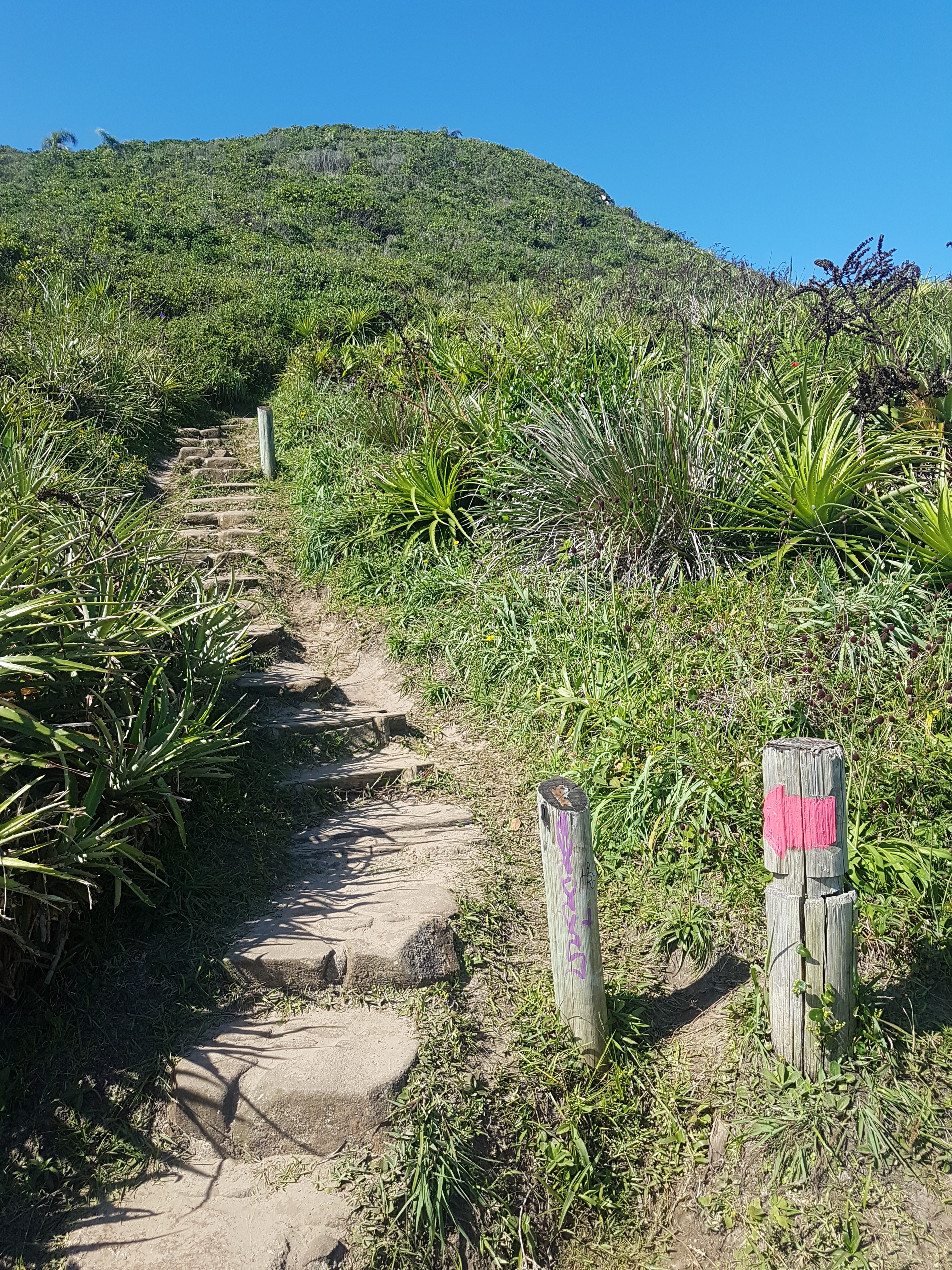 Essa trilha que escolhi é mais longa e mais pesada (subidas imensas) que a que começa no Rosa Sul, por isso pouca gente faz esse percurso (encontrei apenas uma pessoa no caminho!). Além disso, ao invés da vista do mar o tempo todo, a paisagem é mais rural, mas no final já começamos a ver o mar ao longe. O caminho é sinalizado, portanto é difícil se perder. Como eu gosto de trilhas e de exercícios, curti minha escolha!