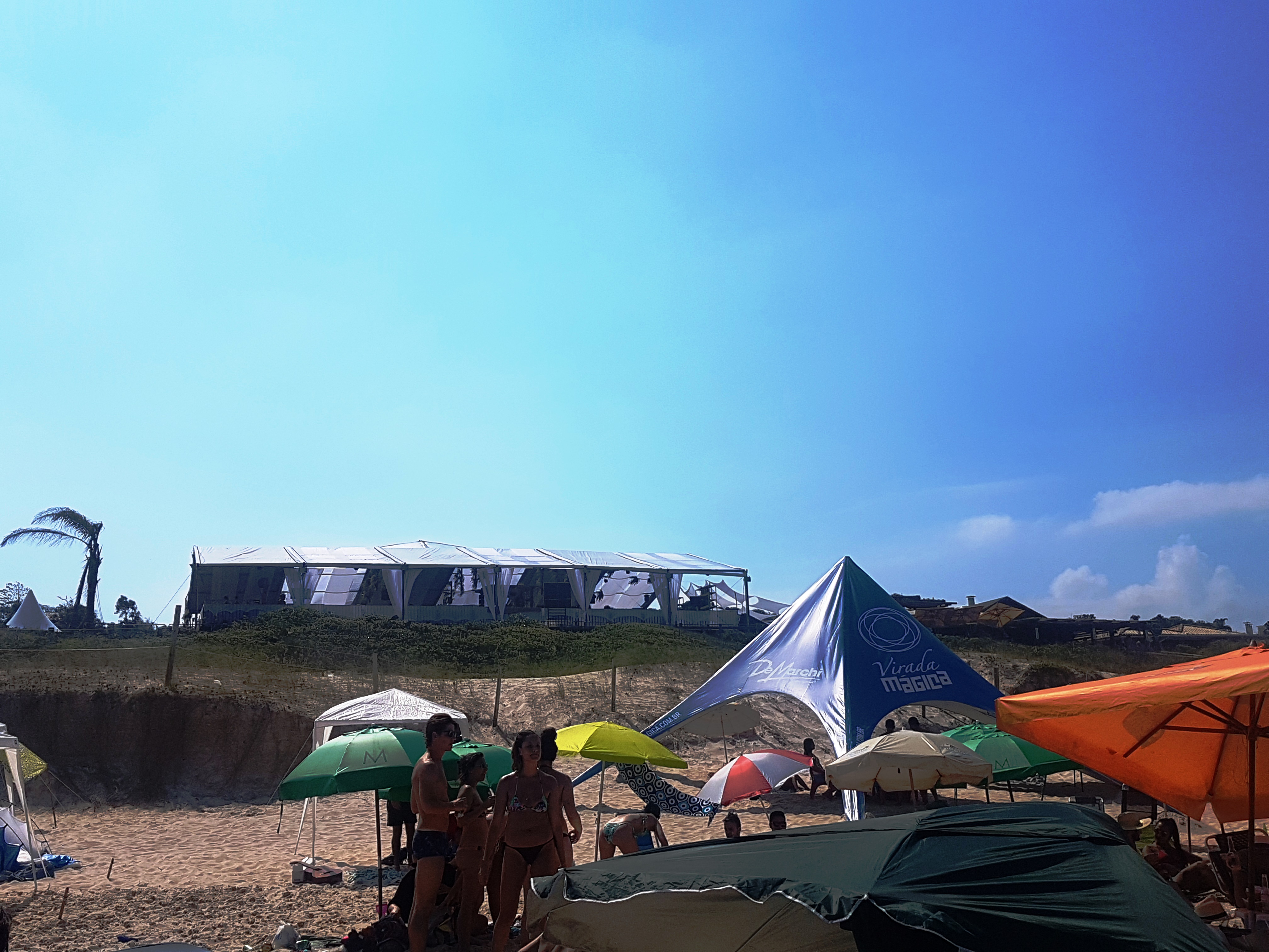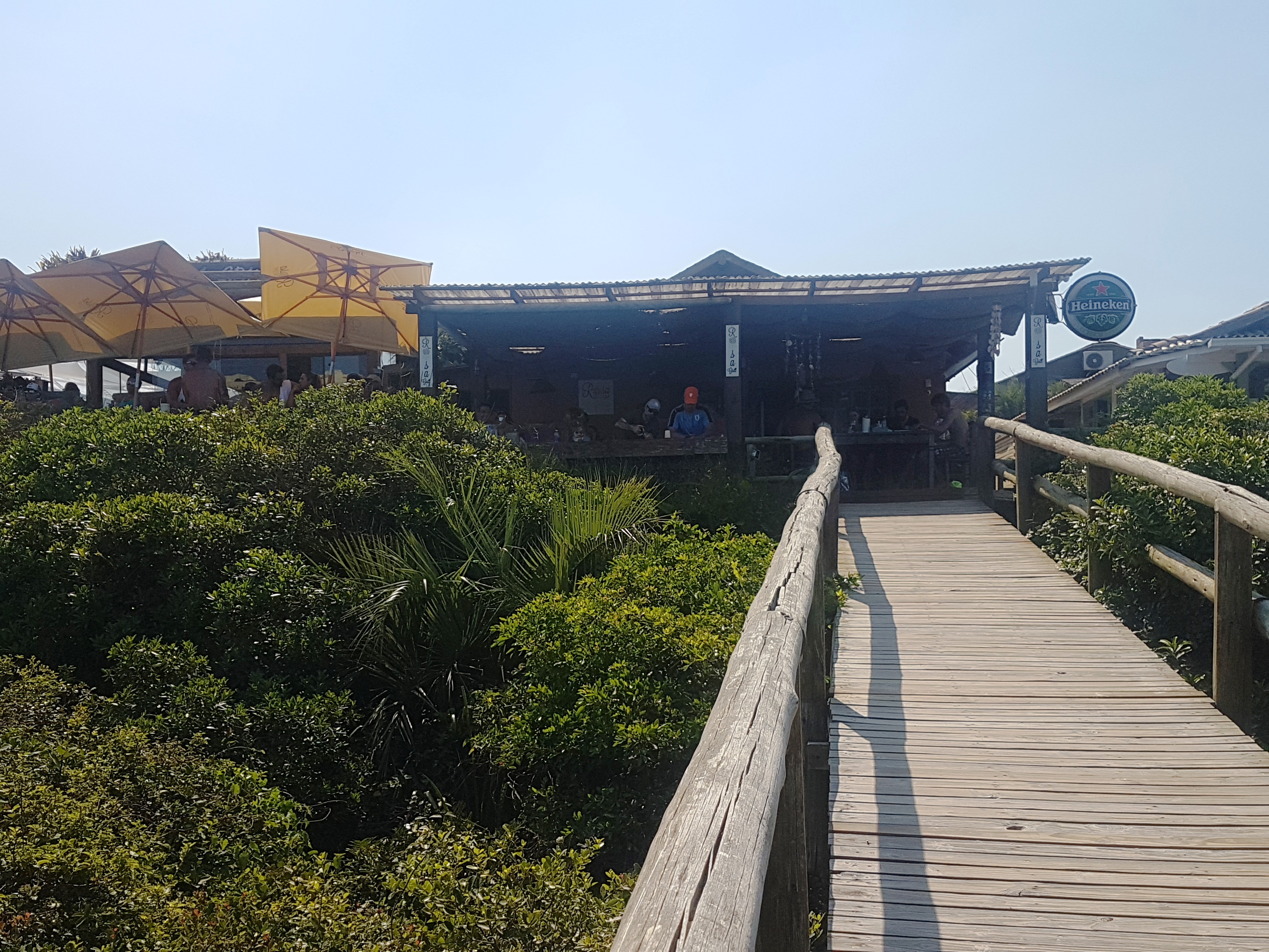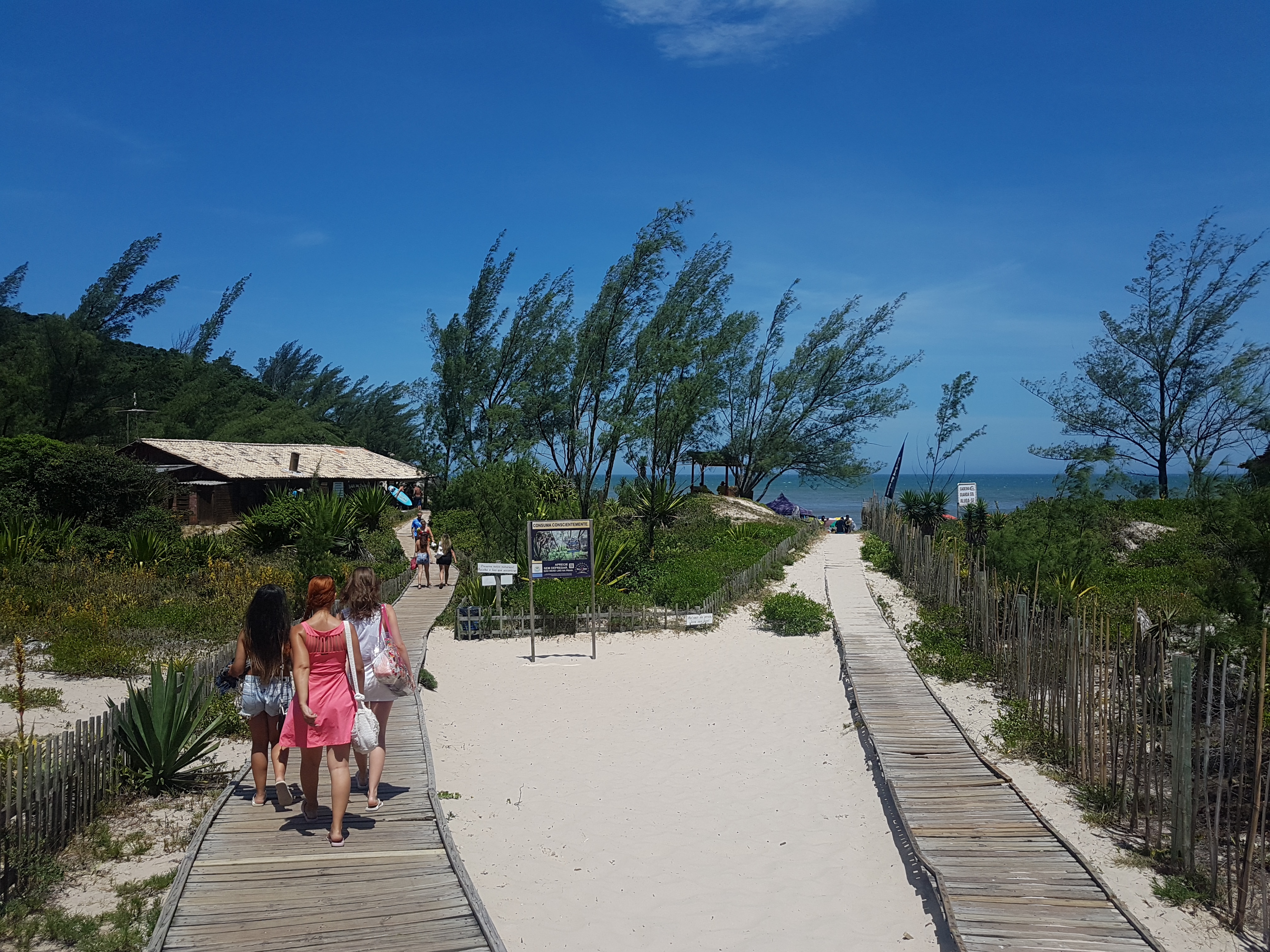 Montamos nosso “acampamento” próximo ao Bar do Zado, parte mais badaladinha da praia. Já amei o caminho para a praia, com o passeio em peças de madeira super integradas com a areia branca e a vegetação de restinga!