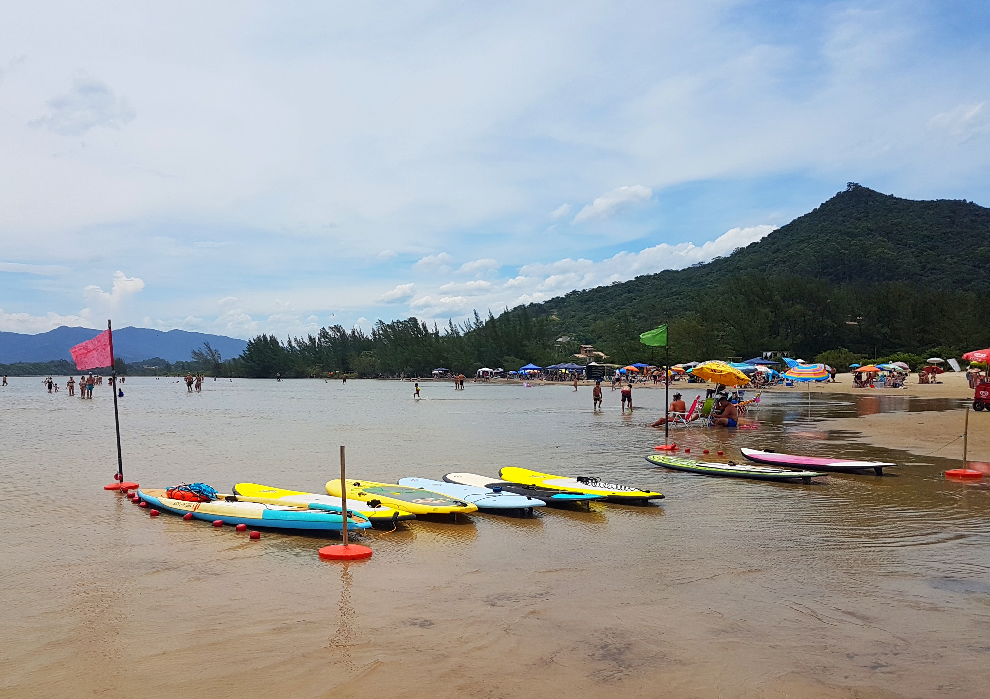 Resolvi caminhar pela praia em direção à Barra de Ibiraquera, onde a lagoa que leva o mesmo nome deságua no mar. Assim como a Lagoa do Meio, próxima ao Rosa Norte, ela é bastante frequentada e é possível alugar pranchas de SUP para fazer um belo passeio. A diferença que essa lagoa é bem maior!