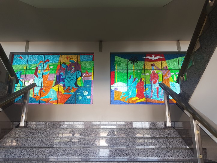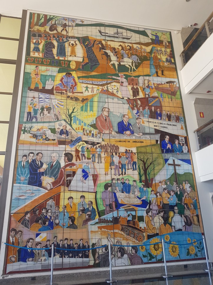 Um “oásis” no meio da praça com o palácio ao fundoSeu interior é belíssimo também, com destaque para os painéis e os mosaicos. Lá dentro tem ainda a maquete da Praça. É possível fazer visitas guiadas pelo Palácio, mas meu tempo era curto e não fiz.