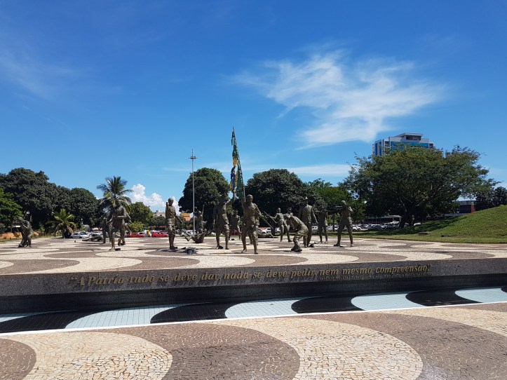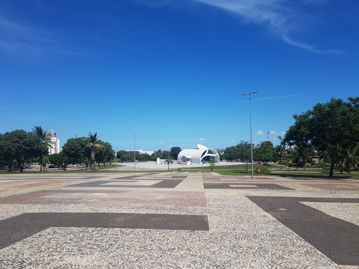 No dia seguinte, já que o meu voo era só no final do dia, dei uma voltinha pela cidade. Na verdade, por causa do calor, não foi uma volta muito grande. Fui com a Bruna (amiga mineira que fiz na expedição do Jalapão) caminhando até a Praça dos Girassóis, que é o centro geográfico da cidade, dividindo ela em Norte e Sul, tanto é que tem uma rosa dos ventos no meio da praça para mostrar que ali também é o centro geodésico do país! Fica bem perto do hotel em que eu estava hospedada, o Hotel 103 Hotel & Flats, e é a maior praça da América Latina (e a 2ª do mundo, perdendo apenas para uma praça de Jacarta na Indonésia).