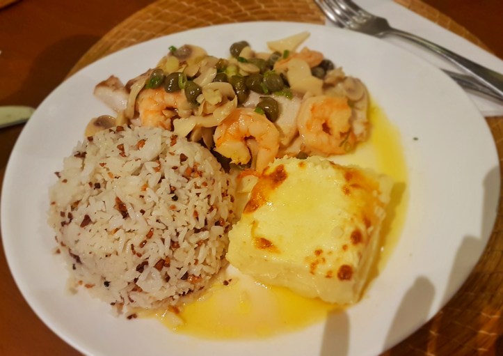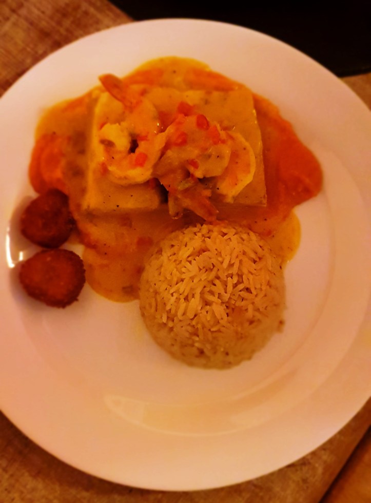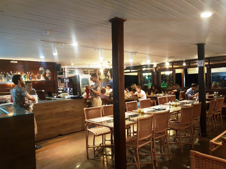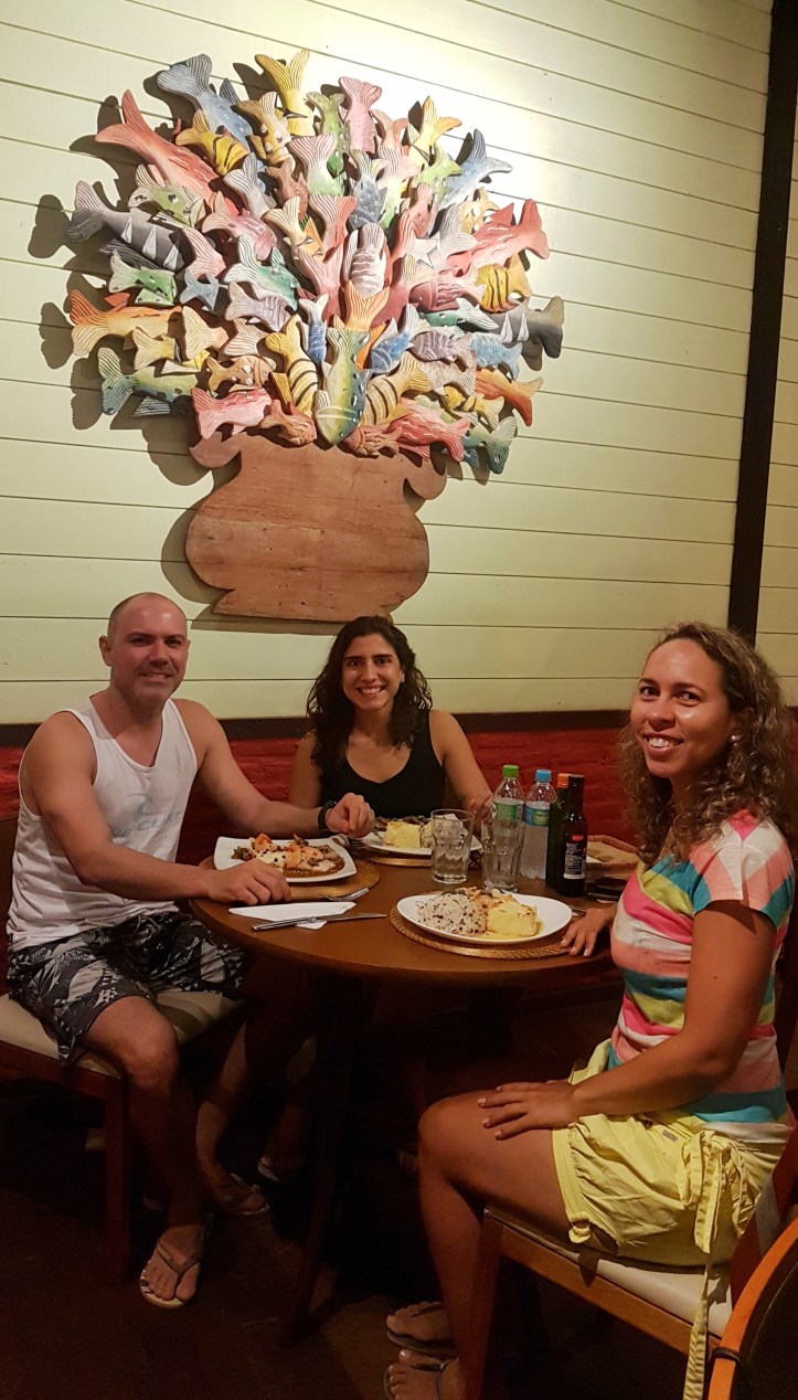 - Restaurante Xica da Silva: bastante conhecido e recomendado em blogs, tem um ambiente mais legal e um cardápio mais caprichado, consequentemente, já entra no rol dos restaurantes com pratos individuais por volta de R$100. A comida é demorada, mas estava bem gostosa. Pedi um peixe com alcaparras, camarões, purê de batata gratinado e arroz de castanhas. Estava divino e bem servido! Os pratos da Lú e do Anderson também estavam ótimos!