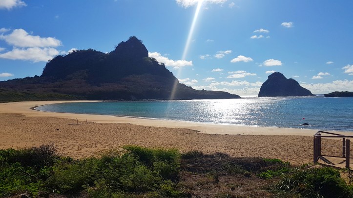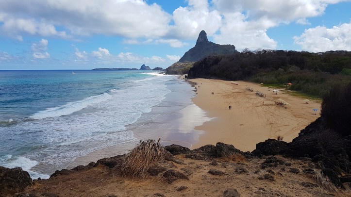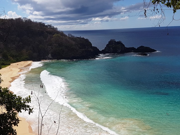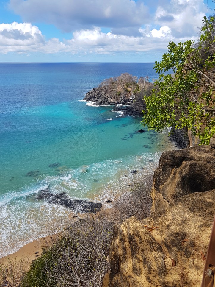 Outra praia belíssima do Parque Nacional Marinho de Fernando de Noronha! Caminhando um pouco após a lojinha onde apresenta o cartão de acesso, chega-se ao mirante, com uma vista panorâmica incrível! Após o mirante, tem a descida para a praia. Não descemos, pois nosso guia disse que o mar é bastante traiçoeiro e puxa muito para dentro. Confesso que estava morrendo de vontade de dar um tchibum naquele mar lindo! Pretendo voltar na época de mar mais calmo para dar aquele mergulho!