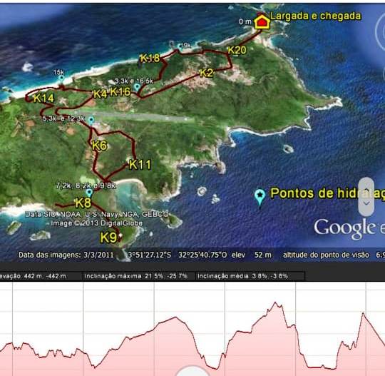 A corrida tem um percurso mais curto de 8km e o principal de 21km. Não é uma meia maratona comum, pois não ocorre apenas no asfalto, tendo trechos de terra, de areia (praia), de pedras e muitas subidonas!