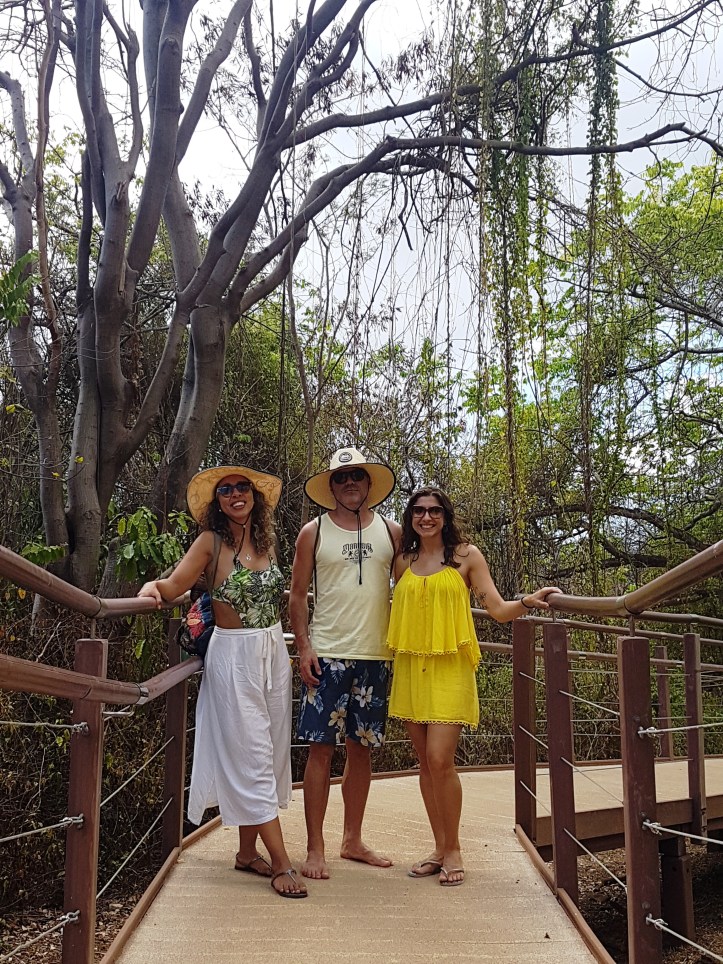 A água é tão transparente que, do alto, conseguíamos avistar os tubarões circulando pelos banhistas. Não precisa ter medo, eles são super de boa! Estão de barriga cheia e lá eles encontram comida bem mais gostosa que a carne humana. Lá também vi uma arraia e peixinhos lindinhos, tudo na beirinha da praia, imagine mergulhando mais para dentro.