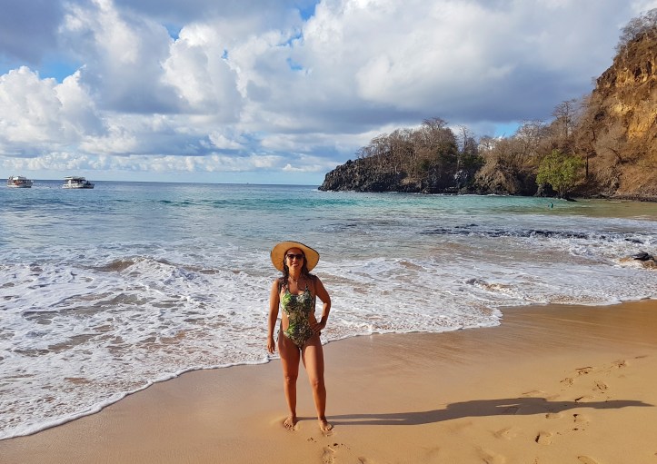 Esse ano realizei um grande sonho: conhecer Fernando de Noronha! Um belo dia, Lú, uma grande amiga, perguntou se eu toparia participar da corrida 21k Noronha. Aceitei na hora, mas para correr 8km, já que não sou adepta das corridas. Queria mesmo curtir a vibe do lugar. Compramos a passagem, reservamos a pousada e, só depois, fomos nos inscrever na corrida. Mas, ao ver o preço da inscrição (muito maior que meu amor pela corrida), decidi que iria para Noronha só curtir e apoiar minha amiga na meia maratona pela ilha!