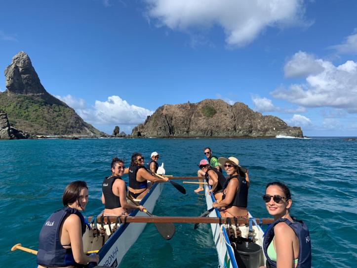 Como eu amo misturar meus esportes favoritos com as trips, não resisti e fiz o passeio de canoa havaiana em Noronha. Infelizmente não tinha mais vaga para o do nascer do sol, mas foi lindo mesmo assim! Só não dei a sorte de encontrar os golfinhos.