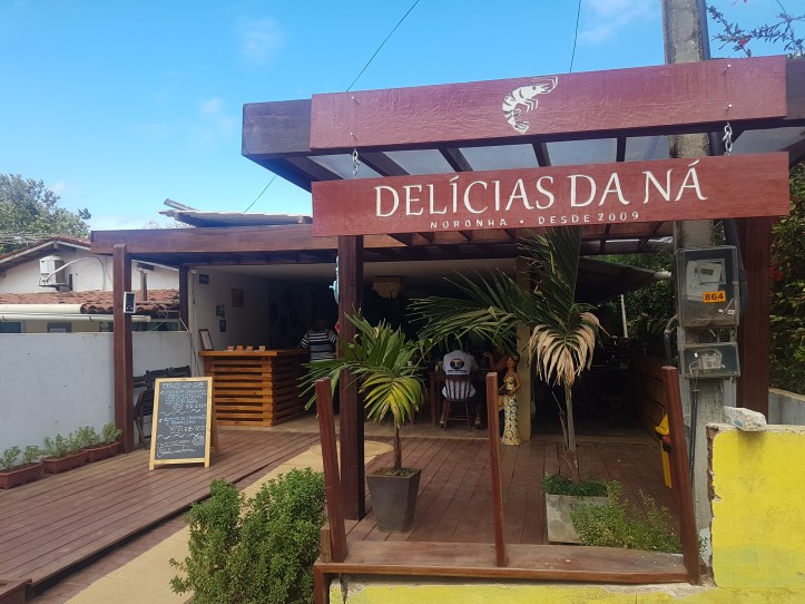 - Restaurante Delícias da Ná: mais um restaurante para o rol dos top de Noronha! Comida saborosíssima e um cardápio bem variado! Os principais pratos são para duas pessoas, mas alguns eles fazem para uma, cobrando 60% do valor. O carro chefe é o camarão no varal, mas resolvi provar o peixe empanado no pancho com salada e pirão. E não me arrependi, pois estava muito bom. A salada estava incrível. Os funcionários são bem atenciosos. Os únicos pontos negativos foram o calor (fui no almoço) e as moscas (praga dos restaurantes abertos em Noronha)!
