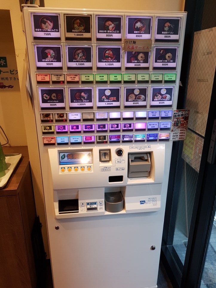 Nossa primeira experiência em Tóquio foi em um restaurante onde escolhíamos a comida na máquina e pagávamos nela mesmo. Logo em seguida uma pessoa trazia nossos pratos até a nossa mesa. Achei mega prático!