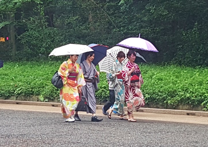 Também me chamou atenção as pessoas passeando pelo parque vestidas de kimono com aquela sombrinha. Bem a imagem dos japoneses de filmes antigos e desenhos animados.
