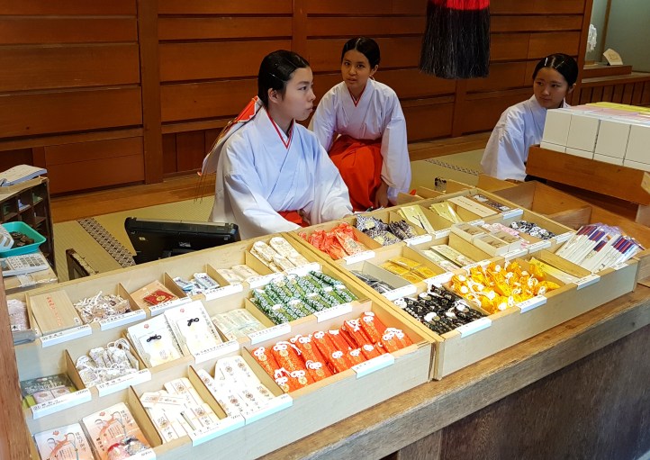 Do pátio central podemos contemplar os lindos templos construídos em madeira e cobre, típicos da arquitetura shimmei. Infelizmente, não pude registrar os altares para mostrar a vocês, pois não é permitido fotografar, mas são lindos.