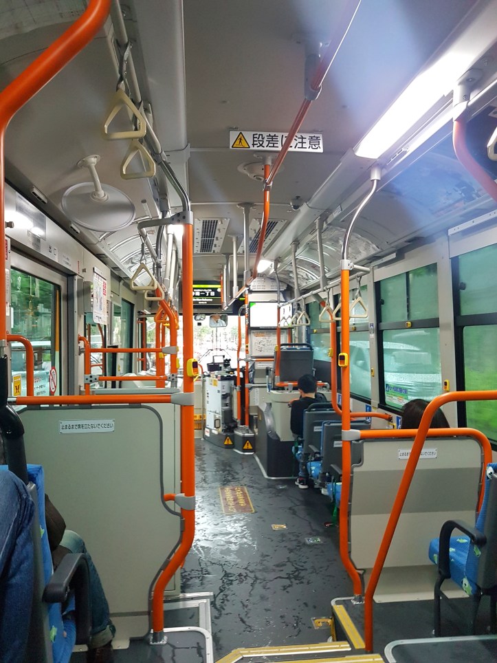 Interior de ônibus em TóquioMas conseguimos utilizar nosso passe para ir para o aeroporto, saindo da estação de Tóquio de Yamanote (uma das linhas mais movimentadas de trem), baldeando para o Monorail até o Terminal Internacional do Aeroporto de Haneda. De Monorail chegamos em 15min ao aeroporto!