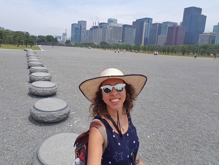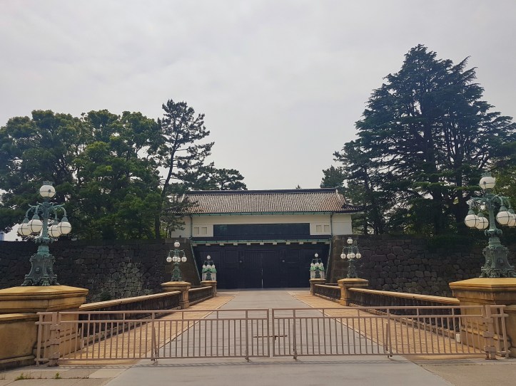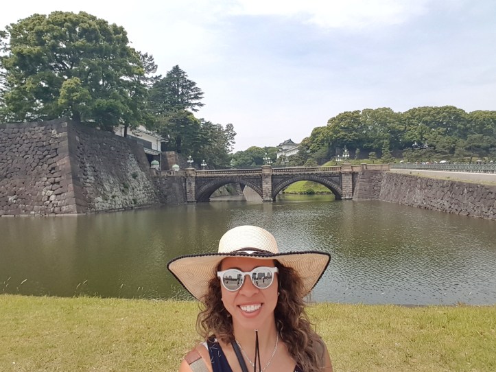 - Palácio Imperial do Japão – em poucos minutos de caminhada desde a estação de Tóquio, percorrendo as ruas por entre os modernos prédios desse bairro de negócios que é Marunouchi, chegamos ao Palácio Imperial do Japão, residencial oficial do imperador do país. Por isso é uma área com um rigoroso controle de acesso. A visitação estava permitida e era gratuita, mas somente das 9:30 às 11:30 pela manhã ou a tarde das 13:00 às 15:00 e por ordem de chegada. Não estávamos disposta a enfrentar a fila e resolvemos explorar os jardins do entorno.