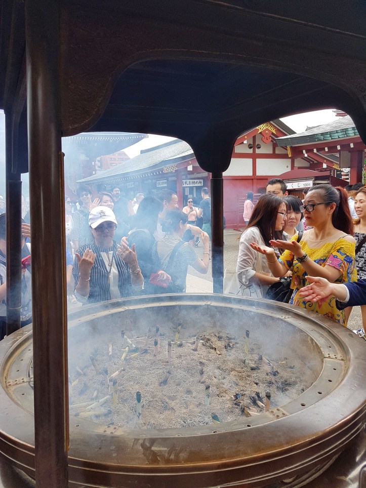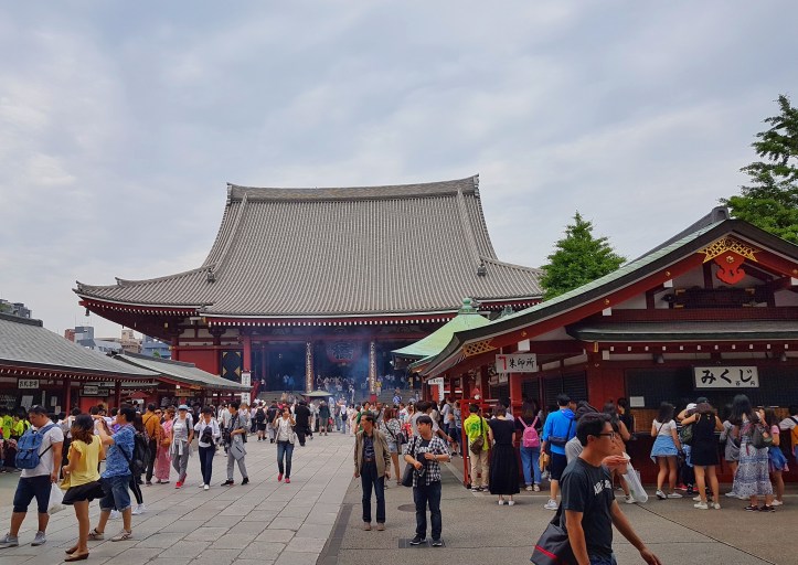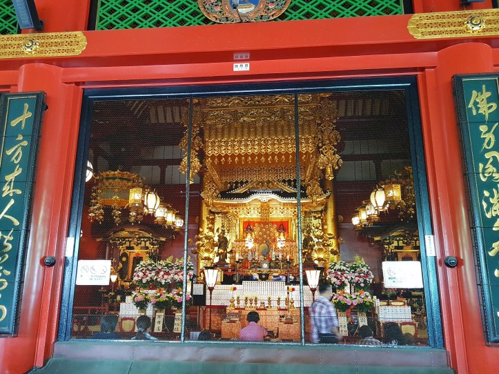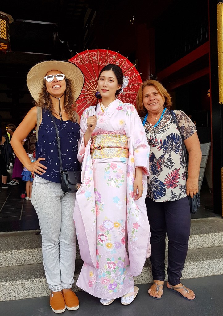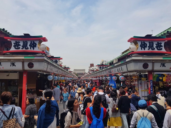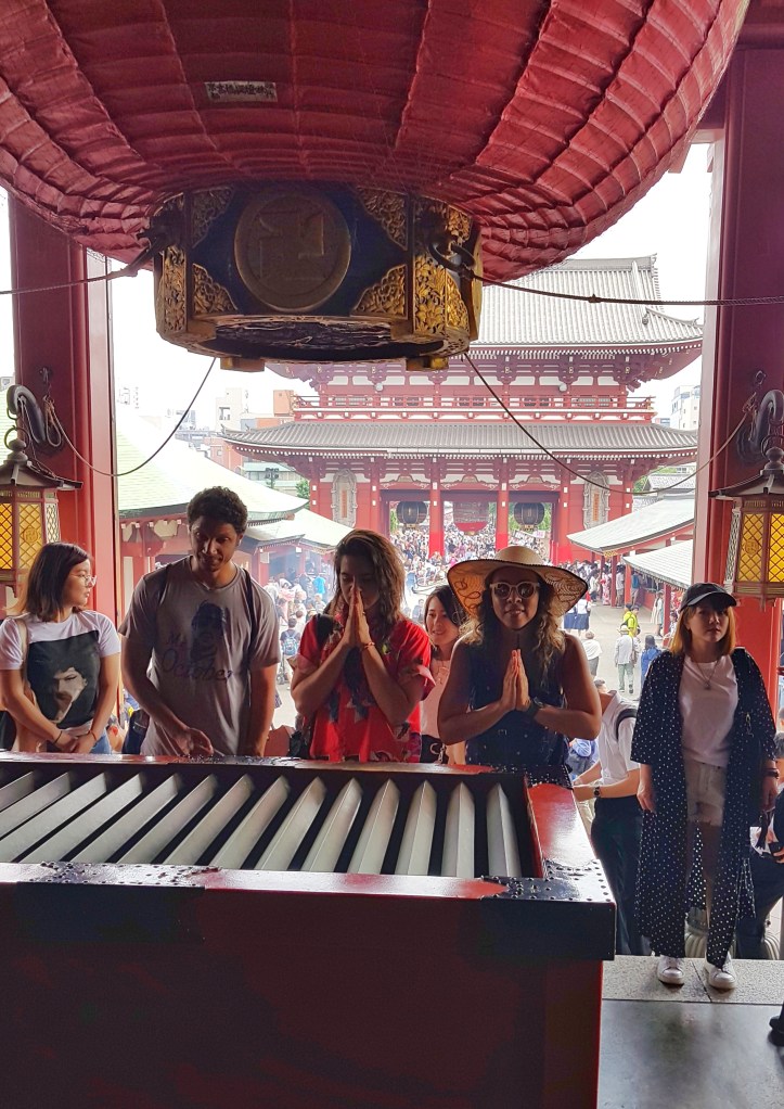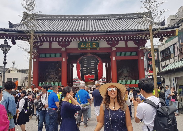 - Asakusa – é um bairro, originalmente da periferia de Tóquio, que mantém as tradições e a arquitetura do Japão antigo. Adorei esse lugar, pois sem muitos deslocamentos, conseguimos visitar um templo maravilhoso, o Sensoji, fazer comprinhas de souvenir na imensidão de lojinhas na rua Nakamise, provar alguns quitutes típicos e degustar um delicioso almoço japonês! Tudo que eu queria!