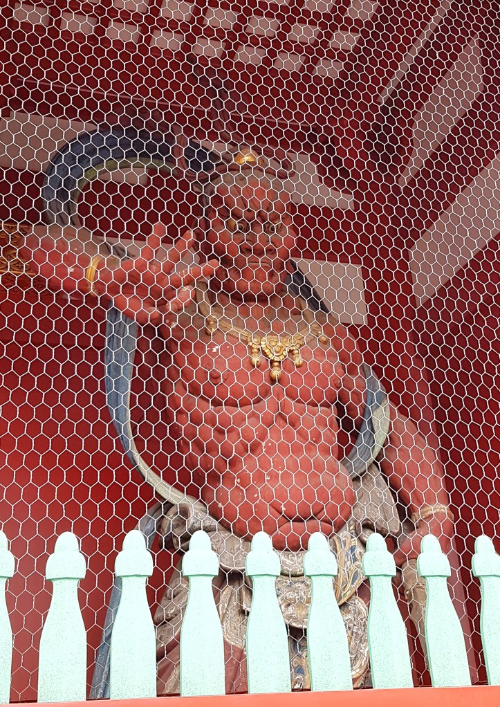 A visita já começa passando por um belo e imponente cartão postal: a gigantesca lanterna vermelha do portal de entrada, o Kaminarimon, protegido por duas gigantescas estátuas de guerreiros em madeira.