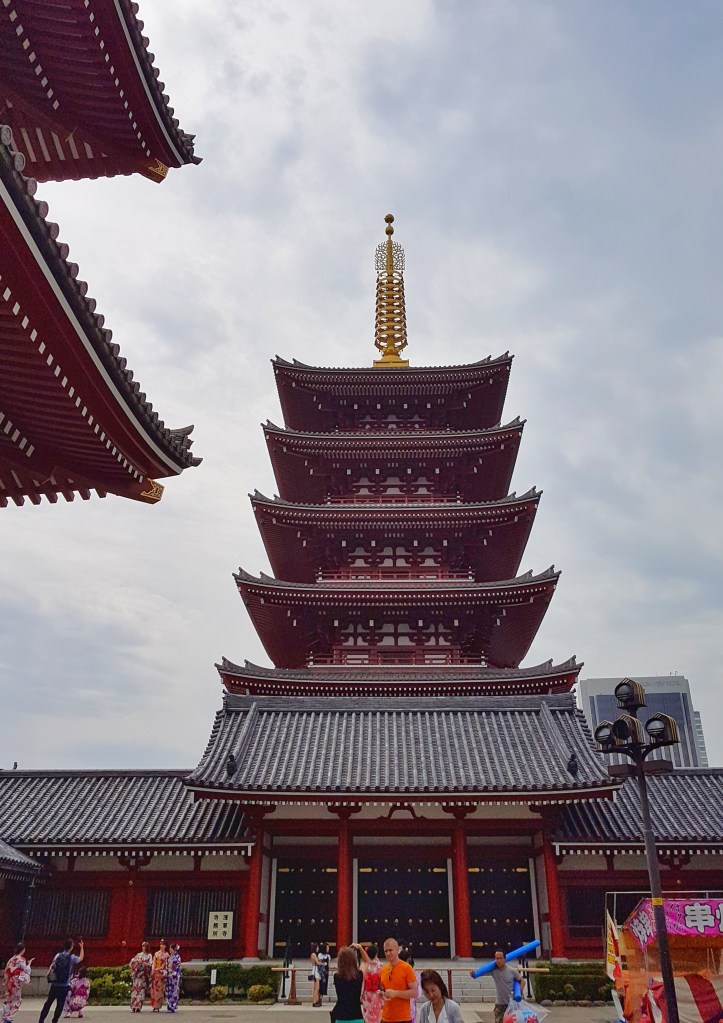 Ao redor do templo principal existem outros, com destaque para a Torre do Asakusa, um pagode de quatro andares belíssimo!