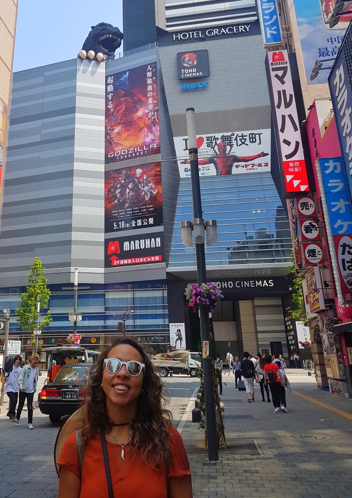 - Toho Building – é um complexo de cinemas no bairro de Shinjuku que atrai turistas por ter uma cabeça do Godzila em seu topo. Achei bem legal percorrer as “ruelas” do bairro atrás desse personagem. Depois ainda passeamos pelos bequinhos de Kabuchiko com seus letreiros coloridos.